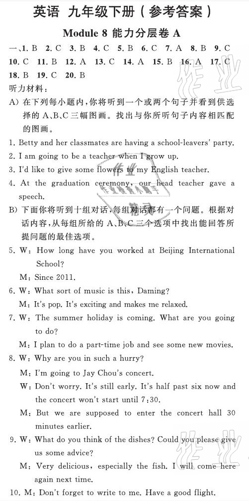 注:目前有些书本章节名称可能整理的还不是很完善,但都是按照顺序排列的,请同学们按照顺序仔细查找。练习册 2021年英语教材补充与练习质监天津单元检测卷九年级英语下册外研版 答案主要是用来给同学们做完题方便对答案用的,请勿直接抄袭。