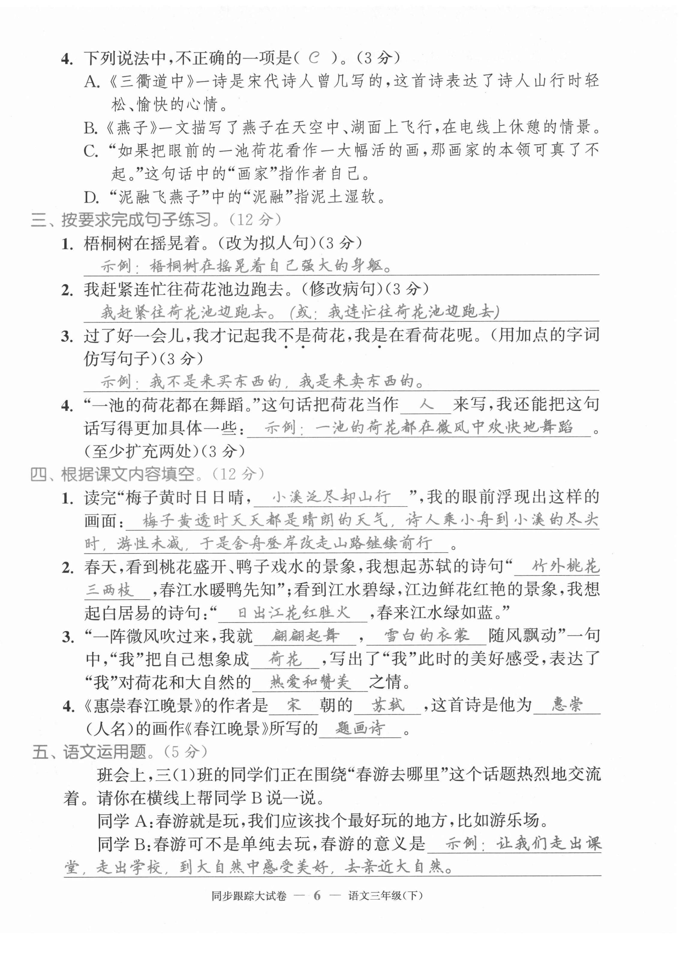 2021年复习金卷同步跟踪大试卷三年级语文下册人教版