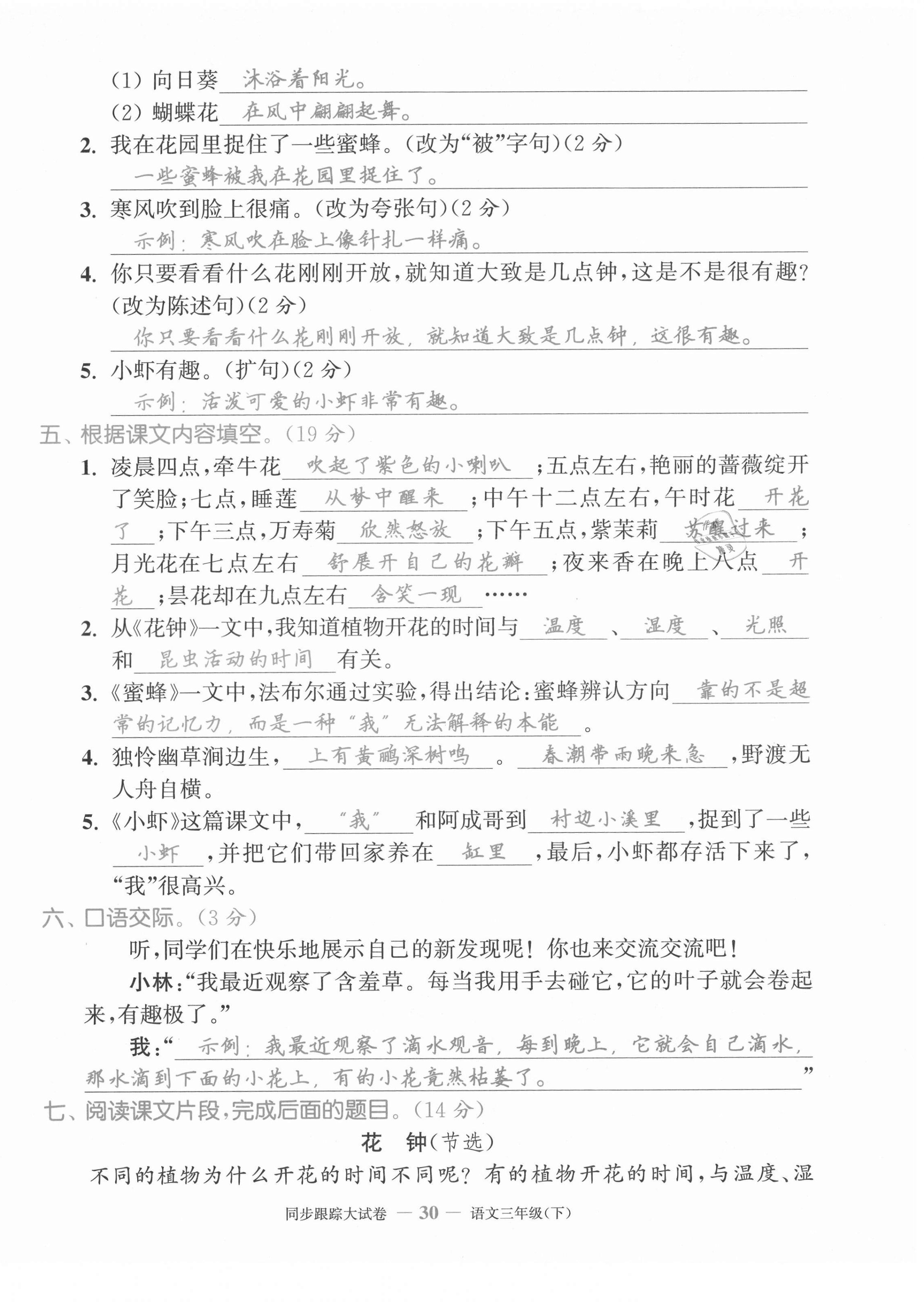 注:目前有些书本章节名称可能整理的还不是很完善,但都是按照顺序排列的,请同学们按照顺序仔细查找。练习册 2021年复习金卷同步跟踪大试卷三年级语文下册人教版 答案主要是用来给同学们做完题方便对答案用的,请勿直接抄袭。