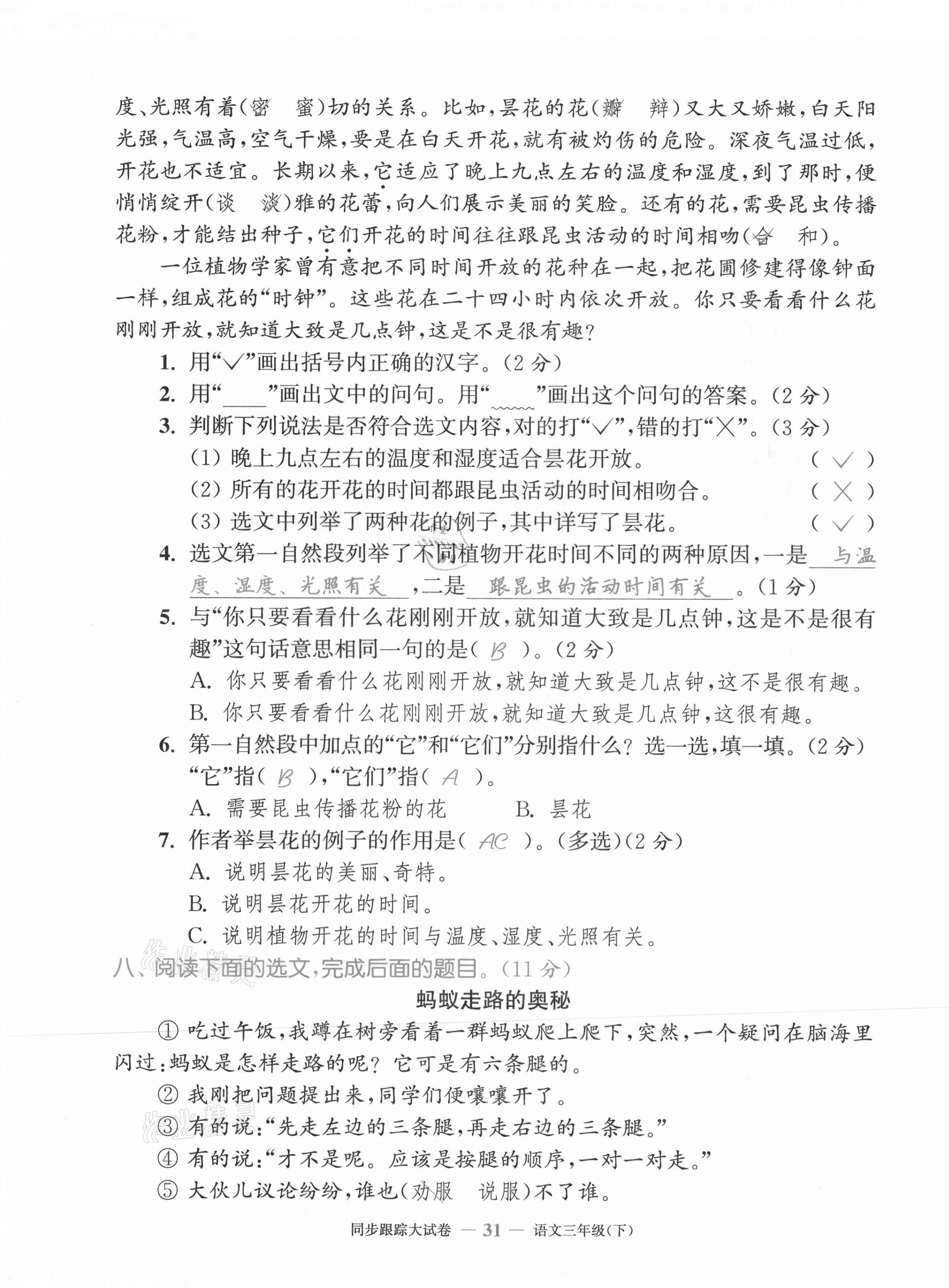 2021年复习金卷同步跟踪大试卷三年级语文下册人教版