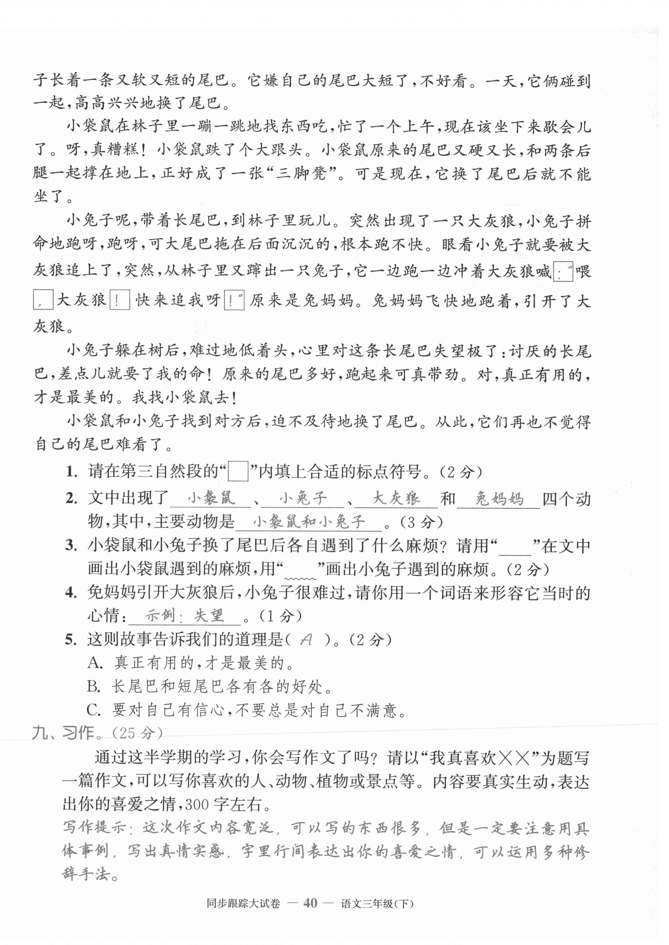 注:目前有些书本章节名称可能整理的还不是很完善,但都是按照顺序排列的,请同学们按照顺序仔细查找。练习册 2021年复习金卷同步跟踪大试卷三年级语文下册人教版 答案主要是用来给同学们做完题方便对答案用的,请勿直接抄袭。