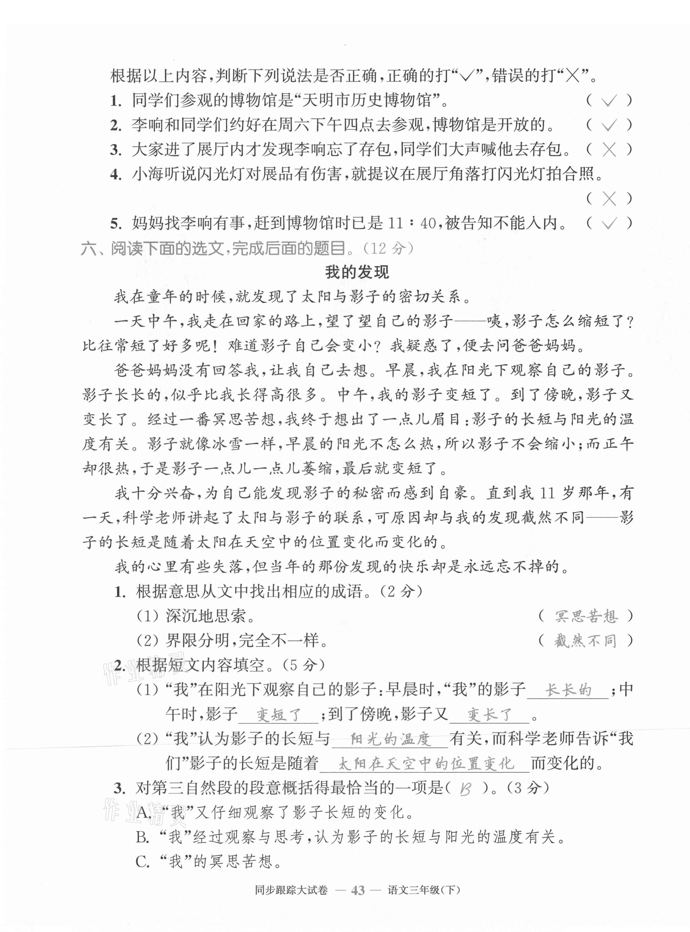 注:目前有些书本章节名称可能整理的还不是很完善,但都是按照顺序排列的,请同学们按照顺序仔细查找。练习册 2021年复习金卷同步跟踪大试卷三年级语文下册人教版 答案主要是用来给同学们做完题方便对答案用的,请勿直接抄袭。