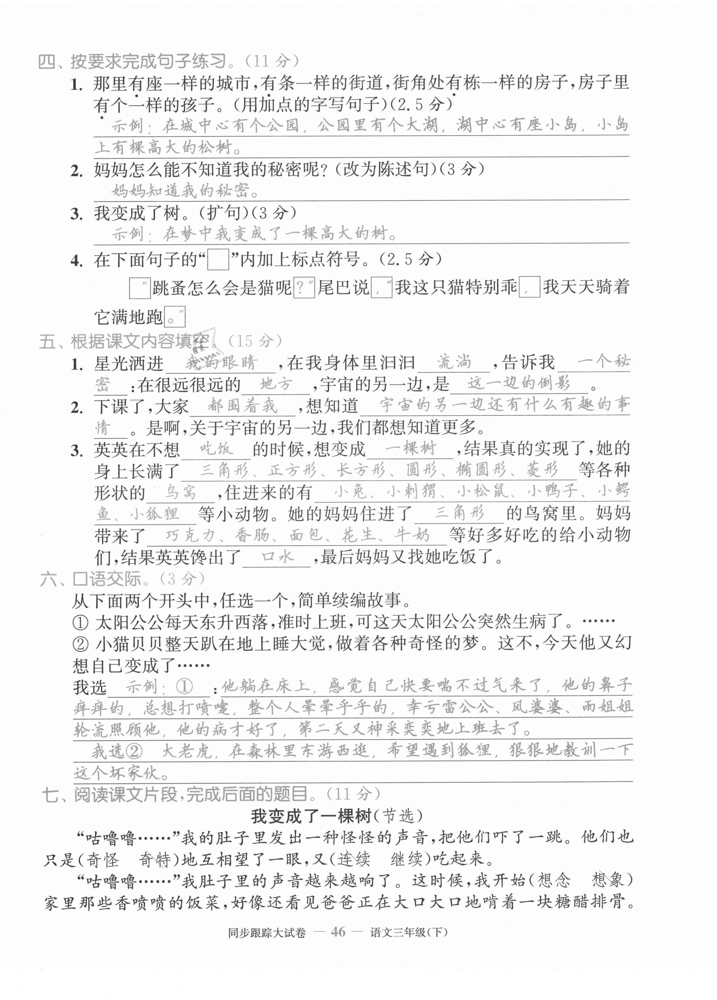 注:目前有些书本章节名称可能整理的还不是很完善,但都是按照顺序排列的,请同学们按照顺序仔细查找。练习册 2021年复习金卷同步跟踪大试卷三年级语文下册人教版 答案主要是用来给同学们做完题方便对答案用的,请勿直接抄袭。