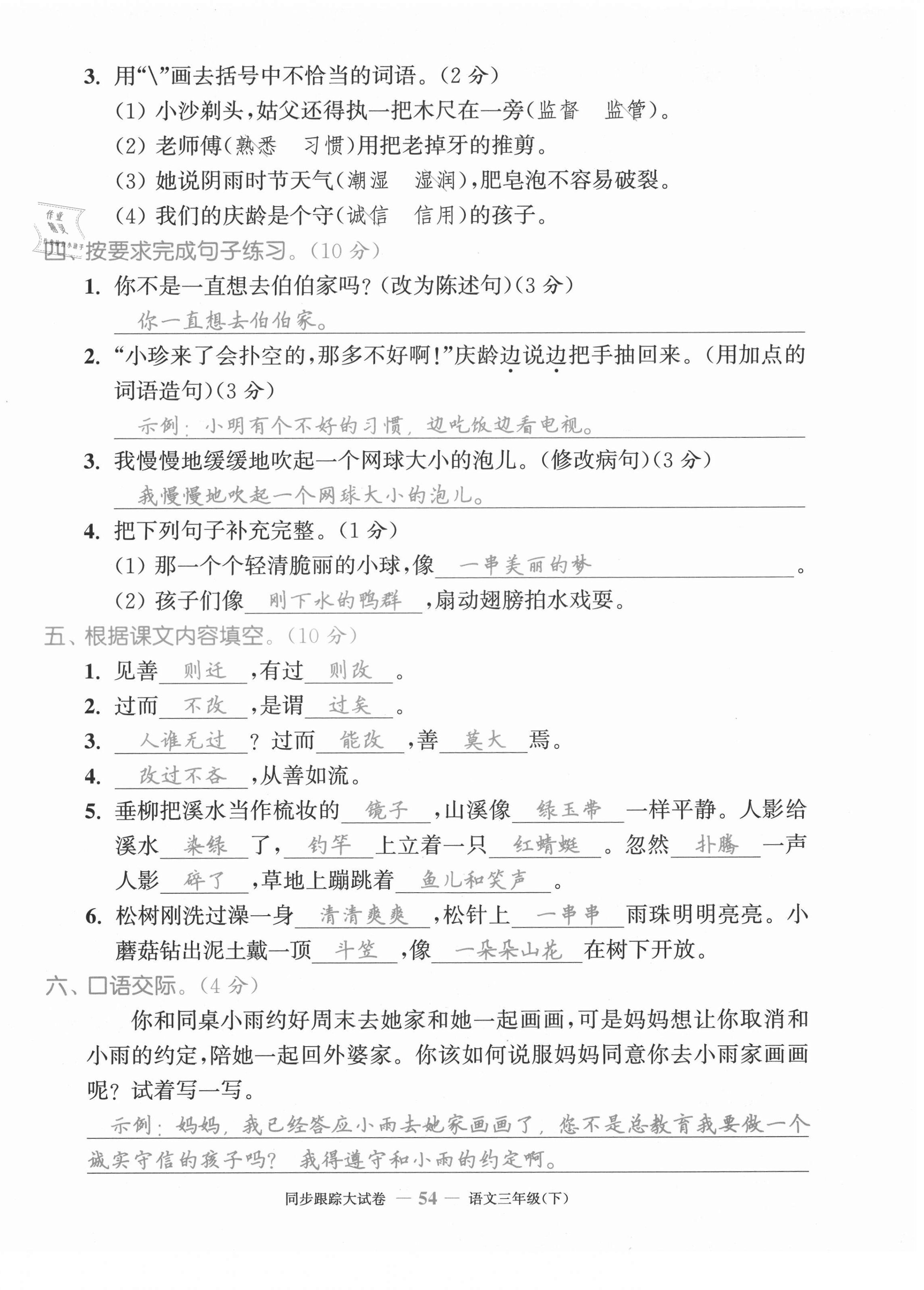 注:目前有些书本章节名称可能整理的还不是很完善,但都是按照顺序排列的,请同学们按照顺序仔细查找。练习册 2021年复习金卷同步跟踪大试卷三年级语文下册人教版 答案主要是用来给同学们做完题方便对答案用的,请勿直接抄袭。