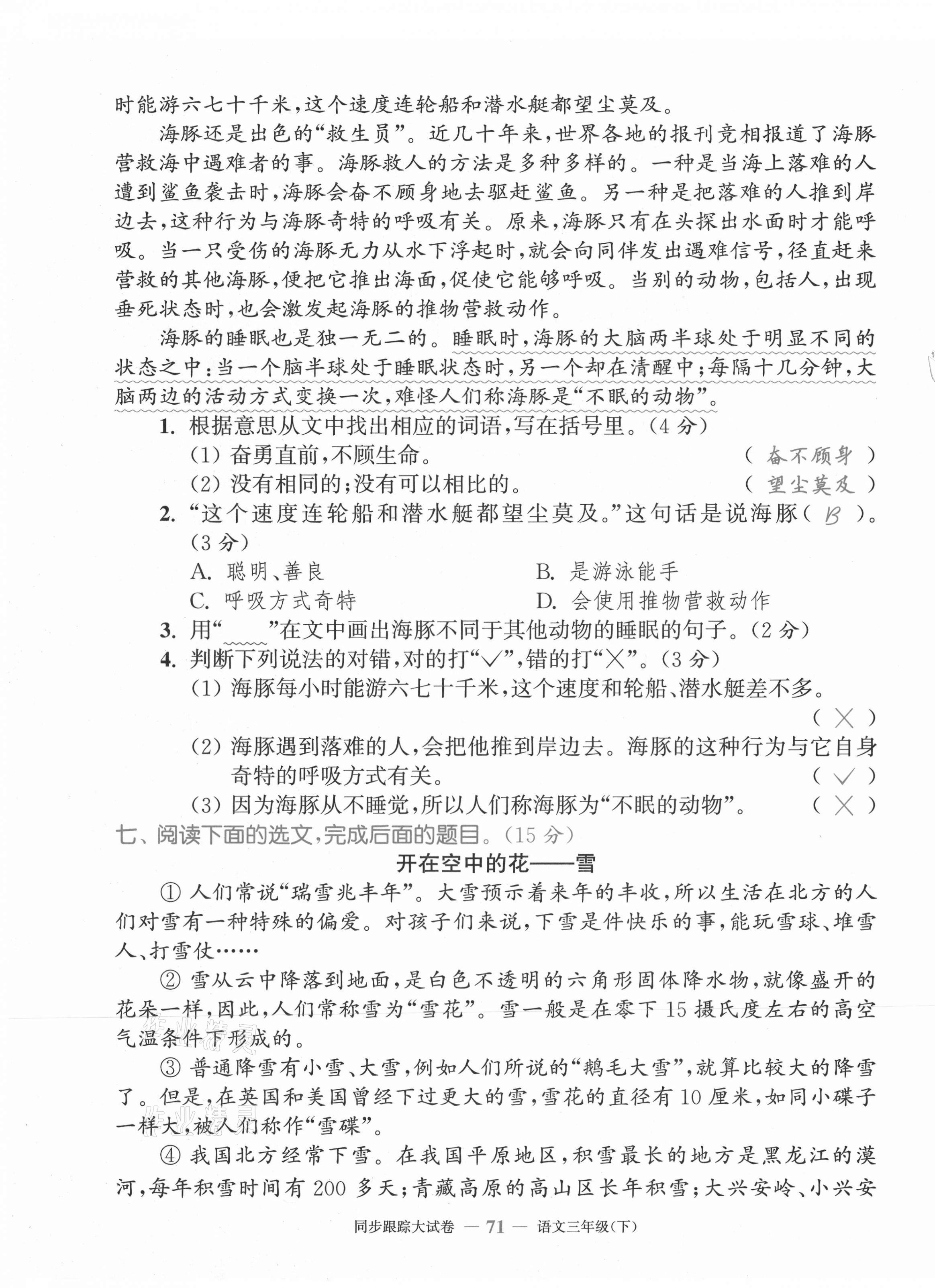 注:目前有些书本章节名称可能整理的还不是很完善,但都是按照顺序排列的,请同学们按照顺序仔细查找。练习册 2021年复习金卷同步跟踪大试卷三年级语文下册人教版 答案主要是用来给同学们做完题方便对答案用的,请勿直接抄袭。