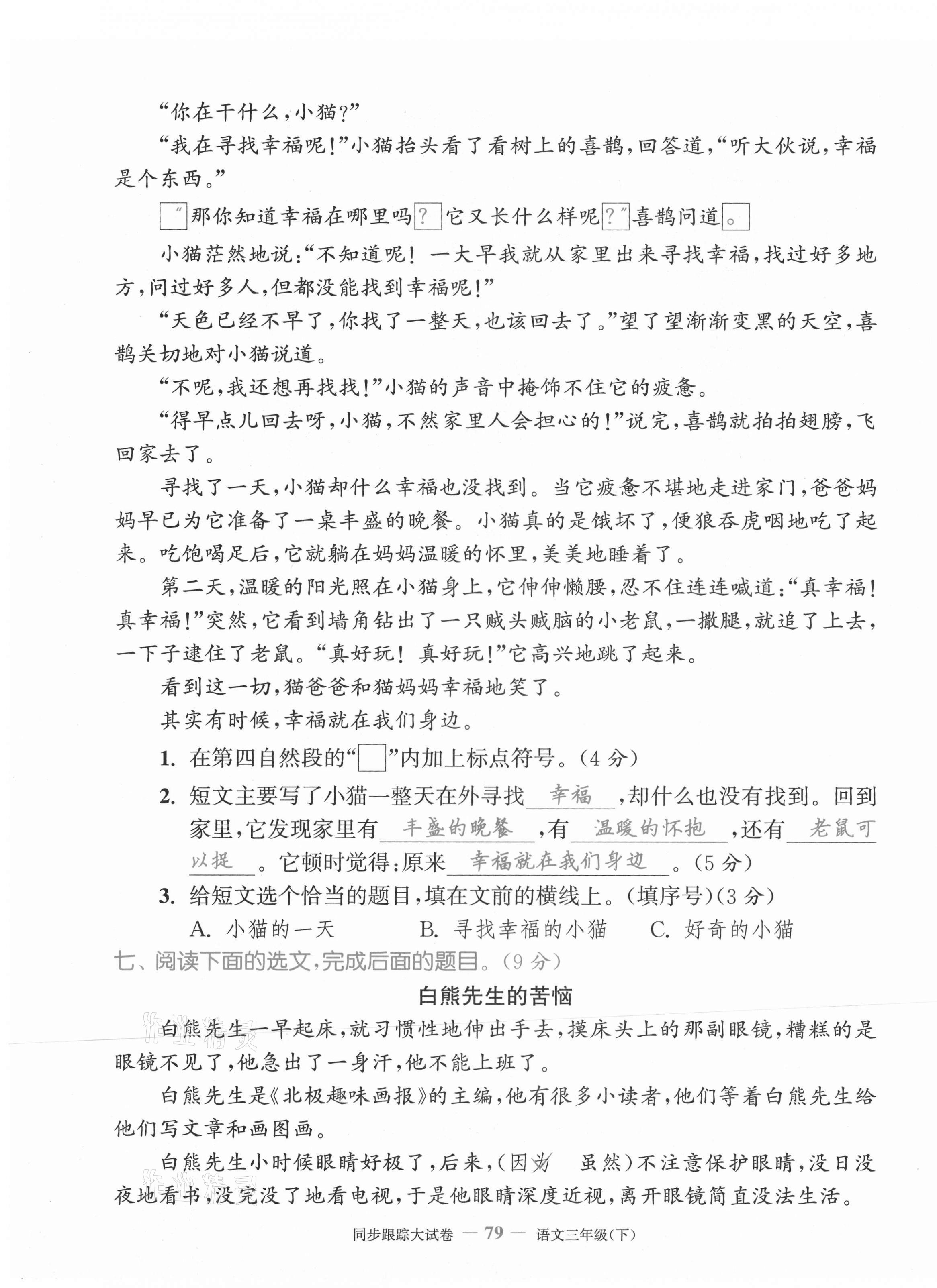 注:目前有些书本章节名称可能整理的还不是很完善,但都是按照顺序排列的,请同学们按照顺序仔细查找。练习册 2021年复习金卷同步跟踪大试卷三年级语文下册人教版 答案主要是用来给同学们做完题方便对答案用的,请勿直接抄袭。
