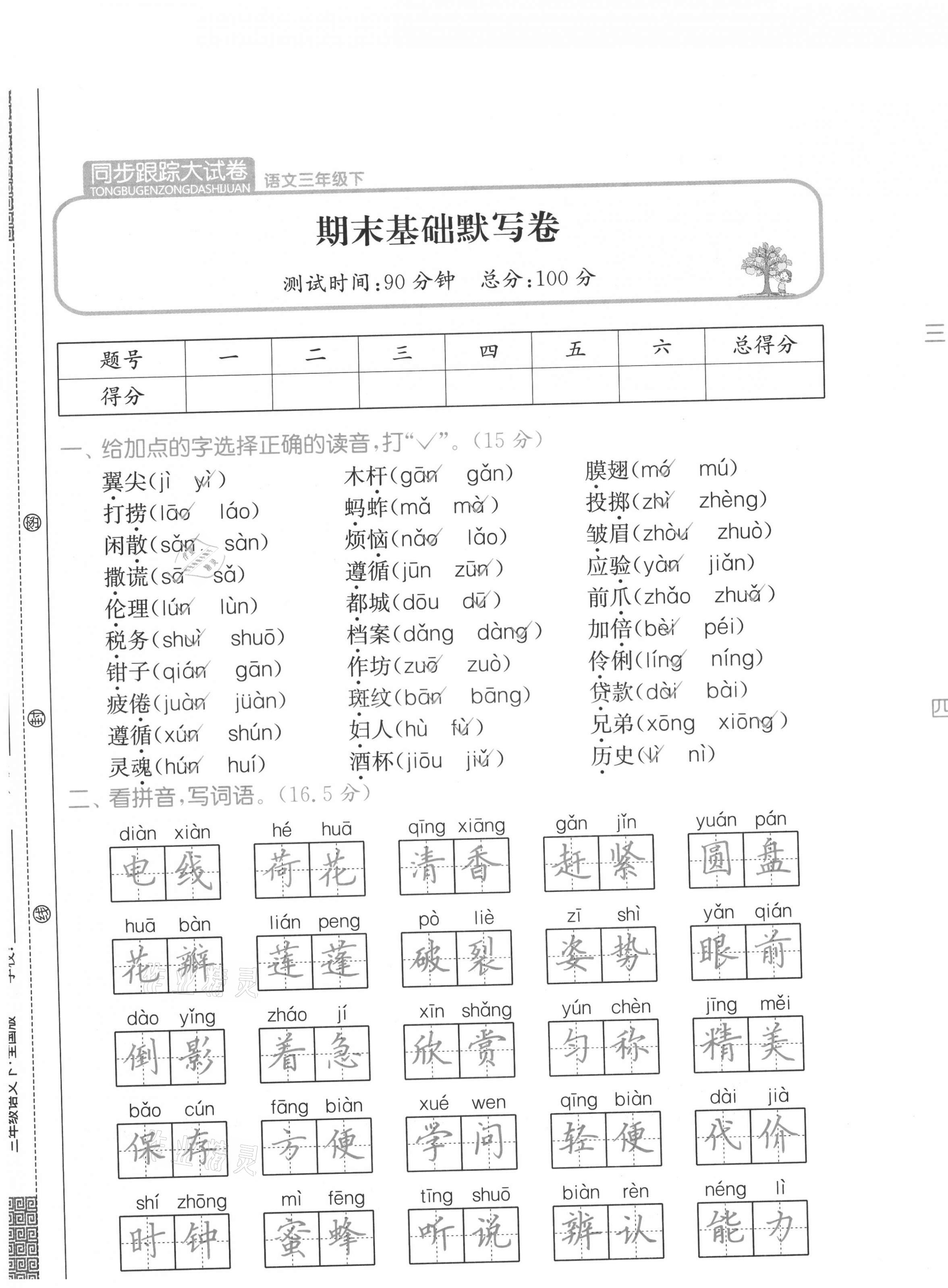 2021年复习金卷同步跟踪大试卷三年级语文下册人教版