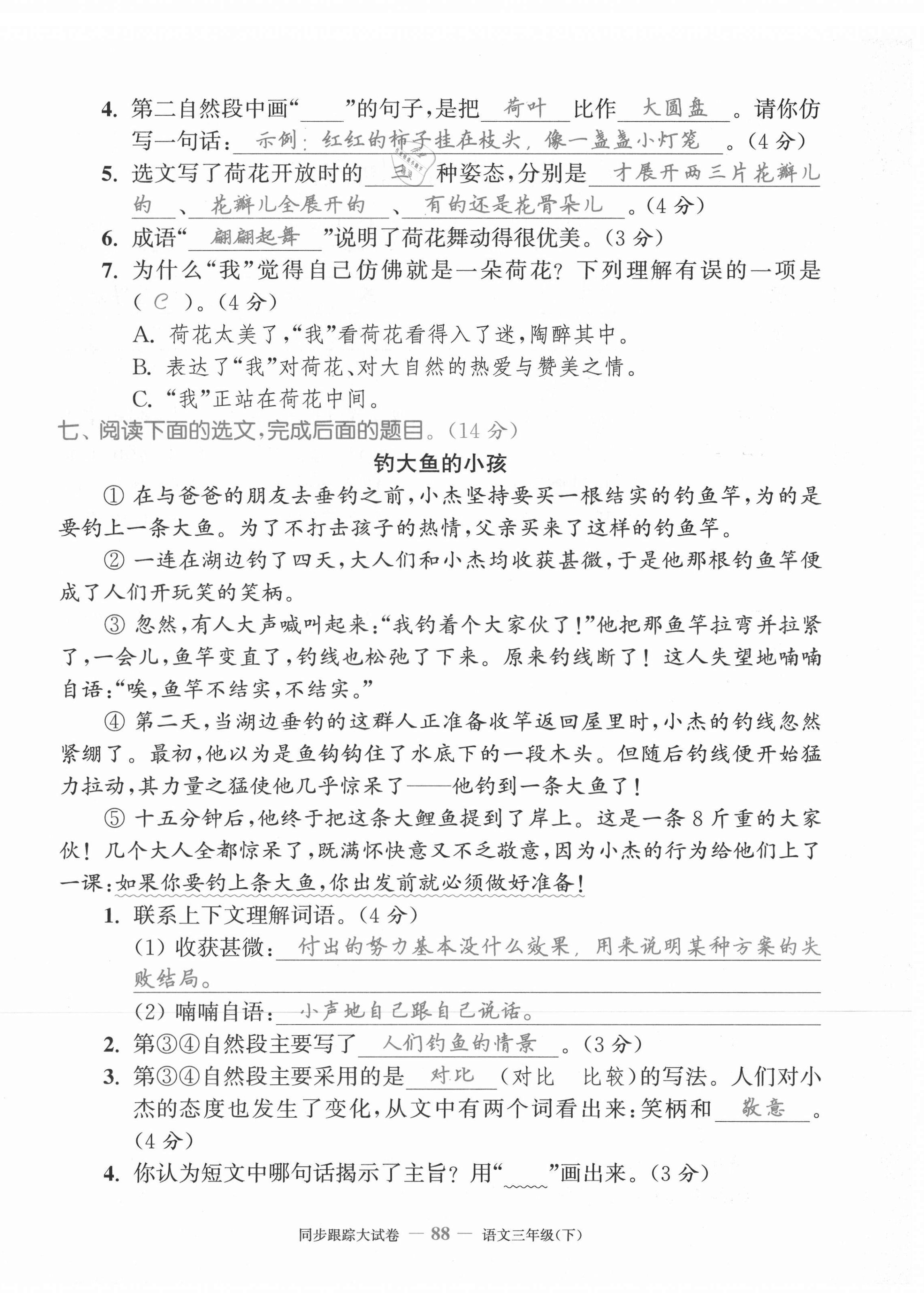 注:目前有些书本章节名称可能整理的还不是很完善,但都是按照顺序排列的,请同学们按照顺序仔细查找。练习册 2021年复习金卷同步跟踪大试卷三年级语文下册人教版 答案主要是用来给同学们做完题方便对答案用的,请勿直接抄袭。