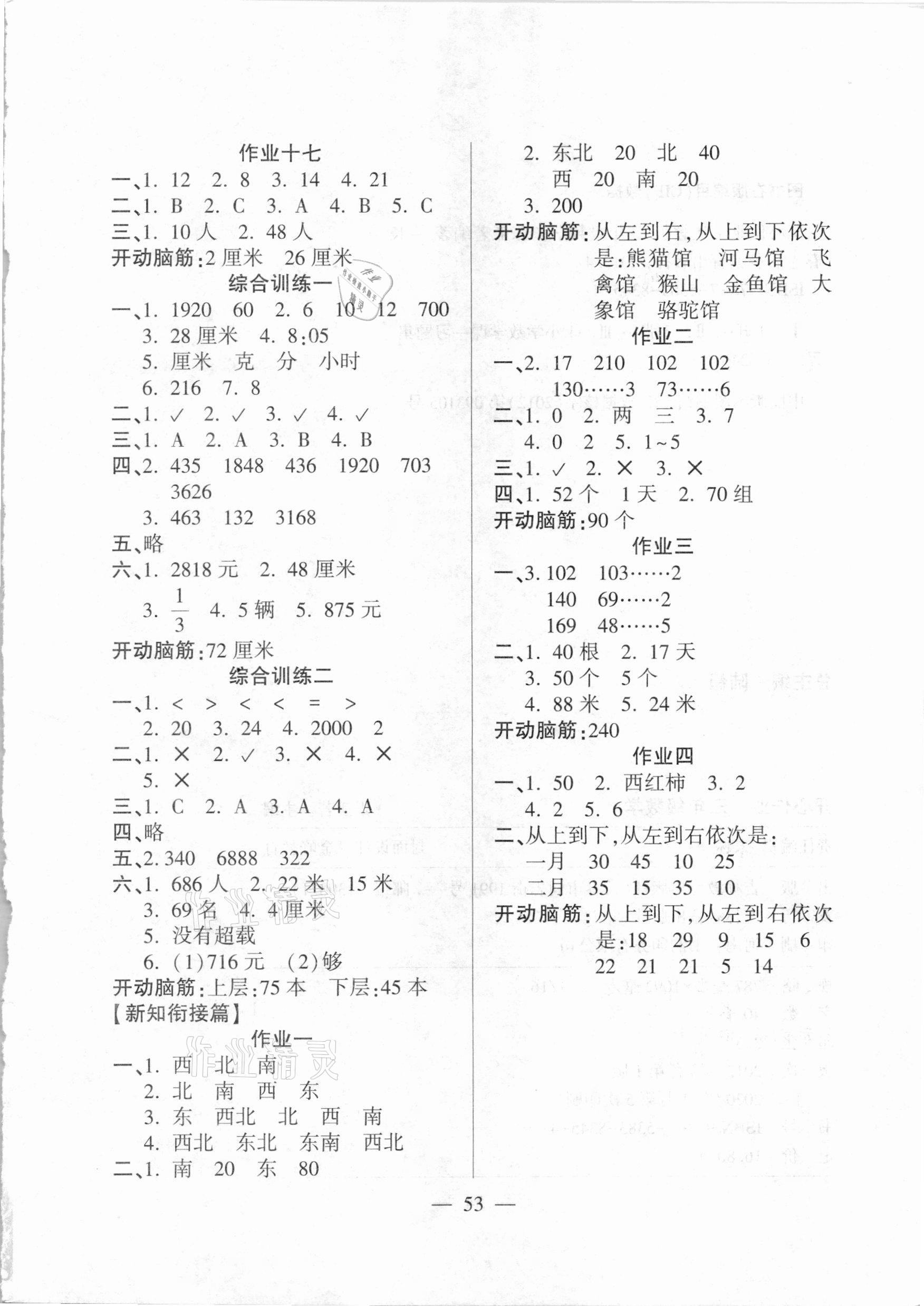 注:目前有些书本章节名称可能整理的还不是很完善,但都是按照顺序排列的,请同学们按照顺序仔细查找。练习册 2021年金峰教育开心作业寒假作业三年级数学人教版 答案主要是用来给同学们做完题方便对答案用的,请勿直接抄袭。