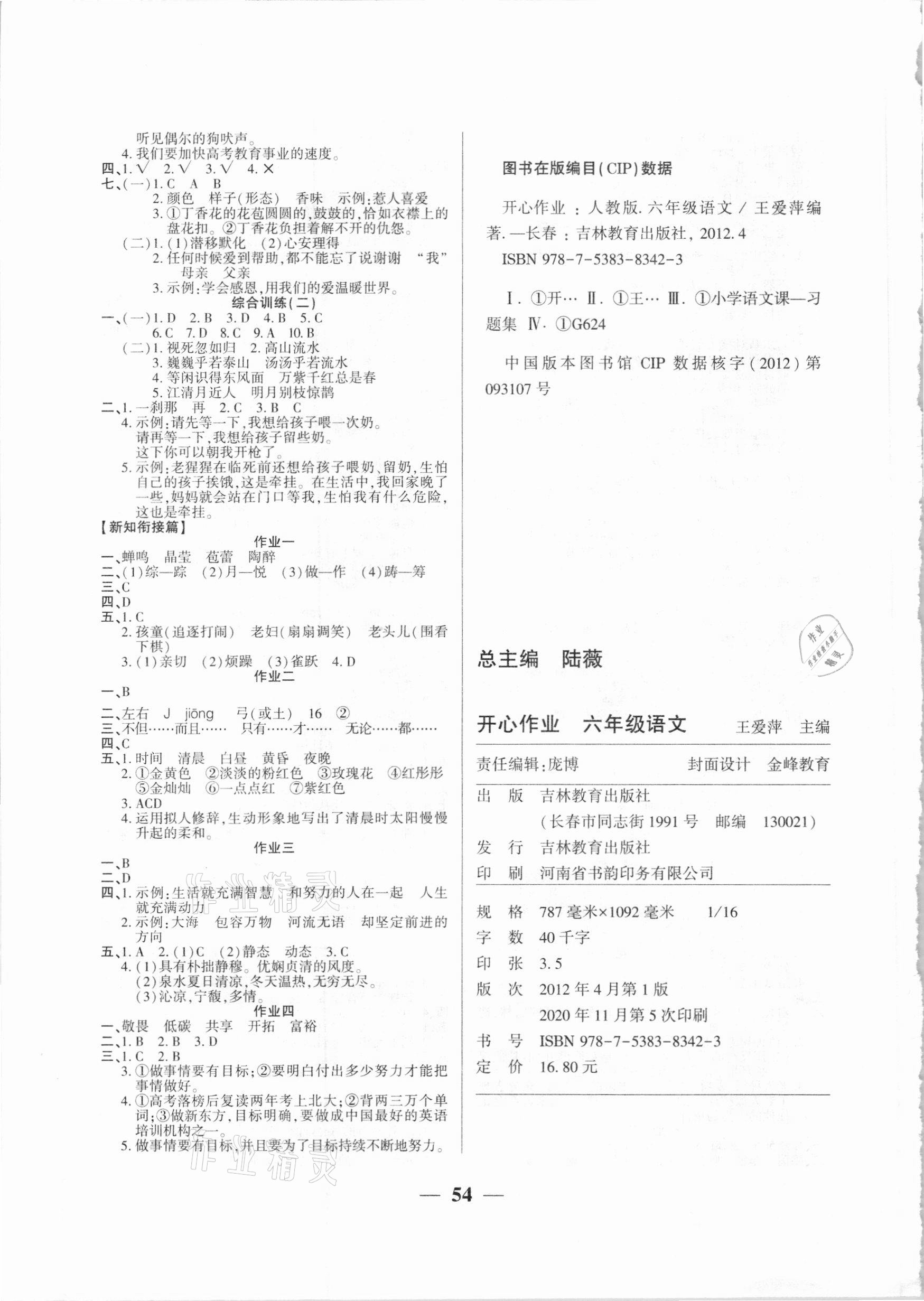 注:目前有些书本章节名称可能整理的还不是很完善,但都是按照顺序排列的,请同学们按照顺序仔细查找。练习册 2021年金峰教育开心作业寒假作业六年级语文部编版 答案主要是用来给同学们做完题方便对答案用的,请勿直接抄袭。