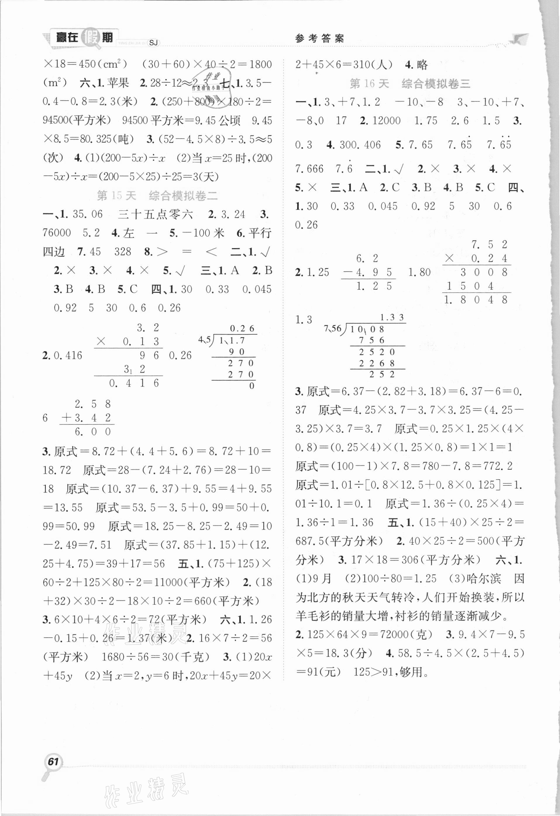 2021年赢在假期期末加寒假五年级数学苏教版合肥工业大学出版社