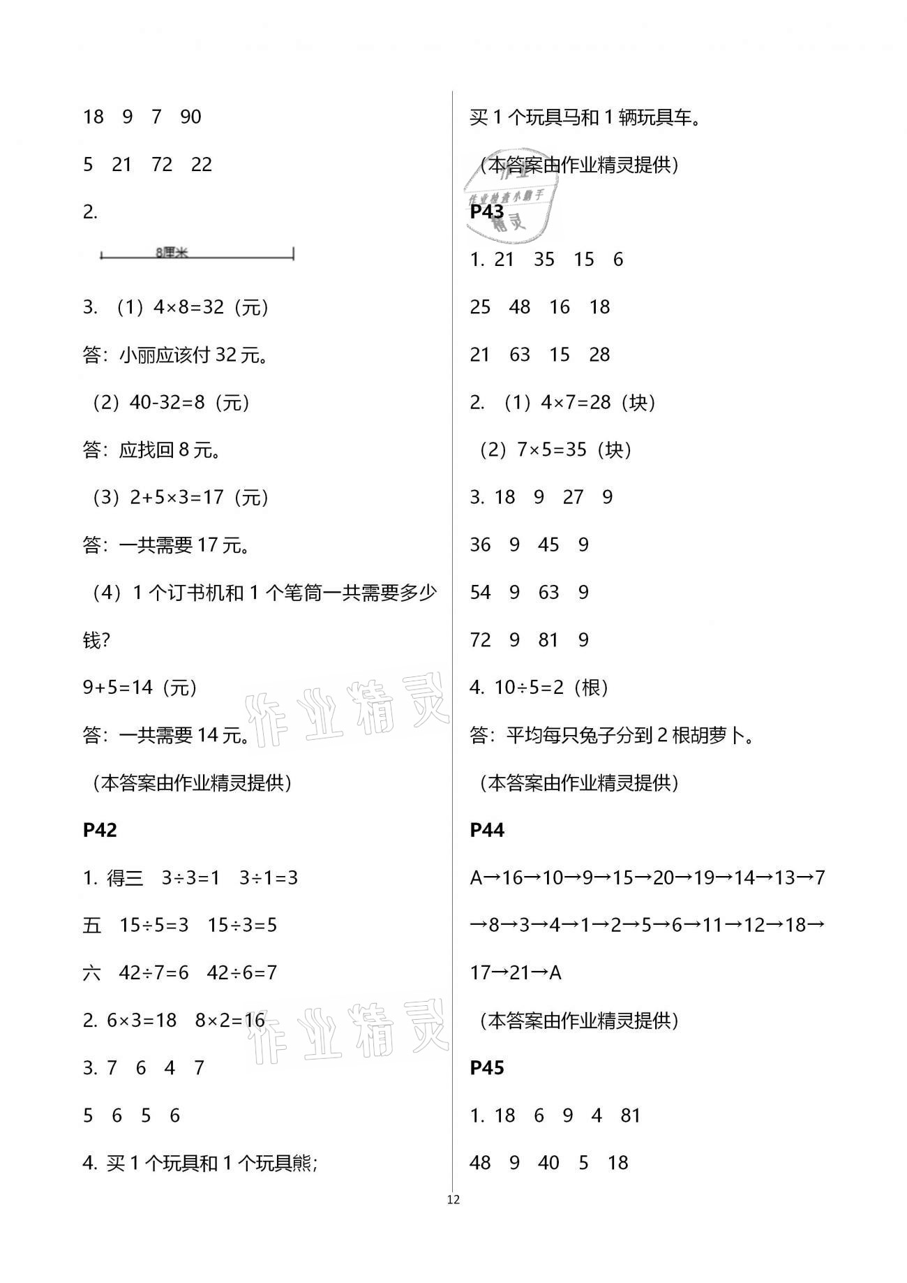 注:目前有些书本章节名称可能整理的还不是很完善,但都是按照顺序排列的,请同学们按照顺序仔细查找。练习册 2021年假日数学寒假二年级北师大版吉林出版集团股份有限公司 答案主要是用来给同学们做完题方便对答案用的,请勿直接抄袭。