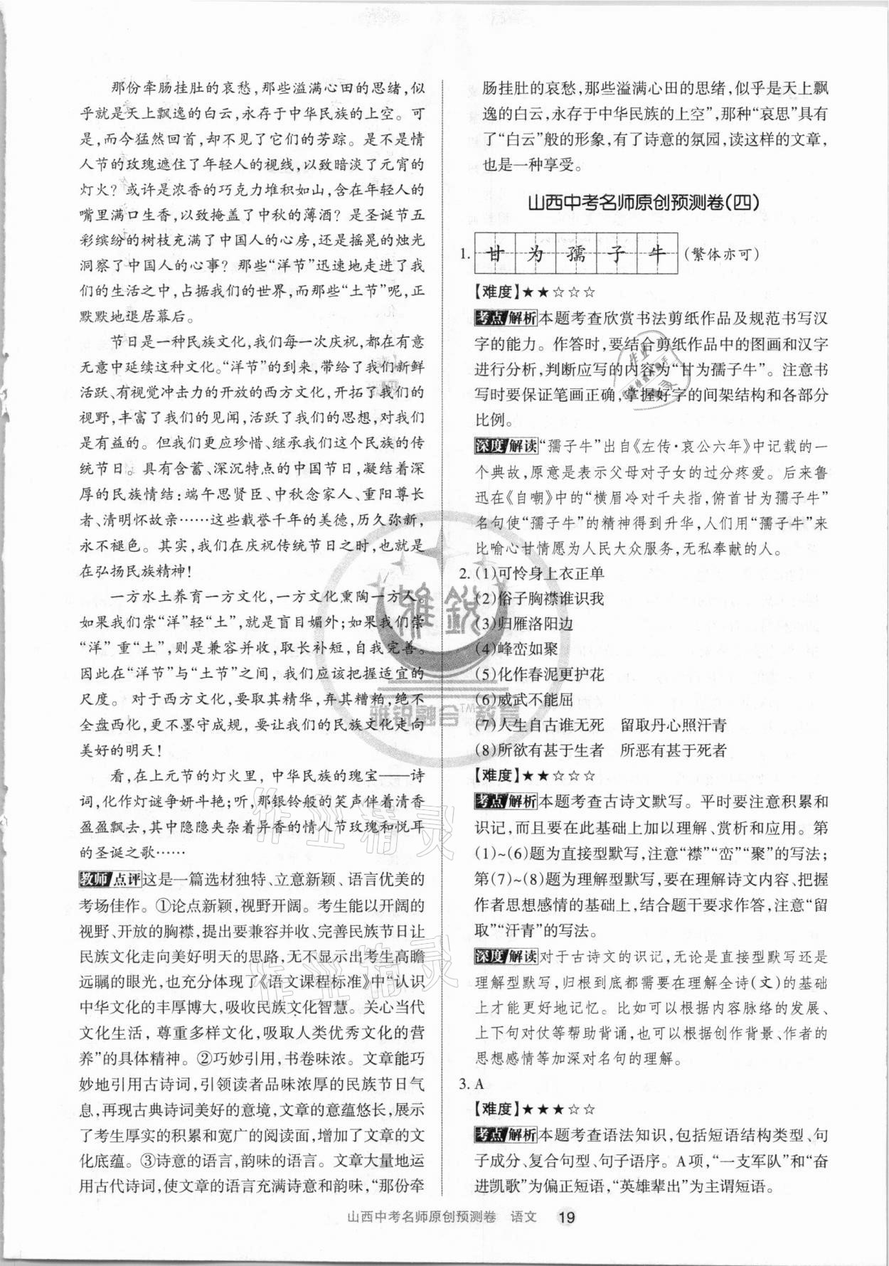 注:目前有些书本章节名称可能整理的还不是很完善,但都是按照顺序排列的,请同学们按照顺序仔细查找。练习册 2021年山西中考名师原创预测卷语文 答案主要是用来给同学们做完题方便对答案用的,请勿直接抄袭。