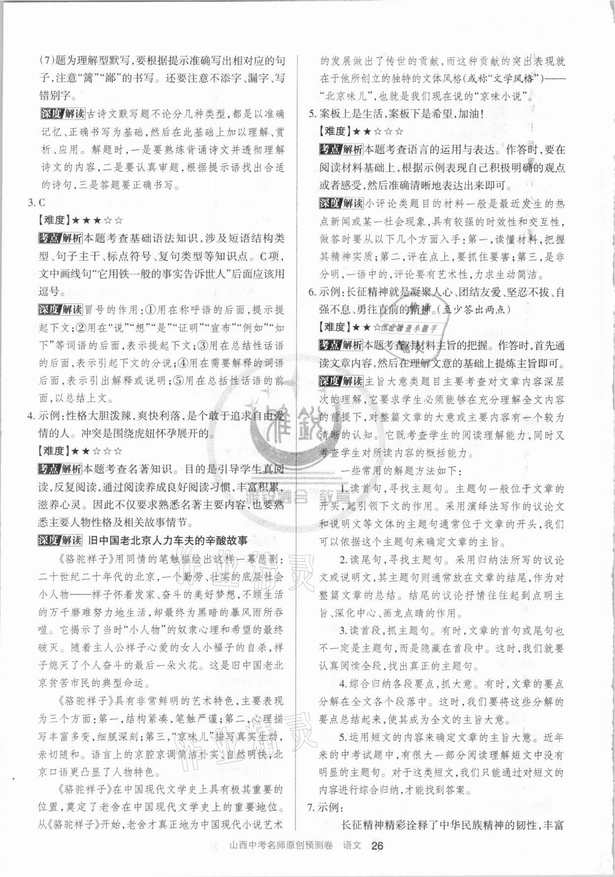 注:目前有些书本章节名称可能整理的还不是很完善,但都是按照顺序排列的,请同学们按照顺序仔细查找。练习册 2021年山西中考名师原创预测卷语文 答案主要是用来给同学们做完题方便对答案用的,请勿直接抄袭。