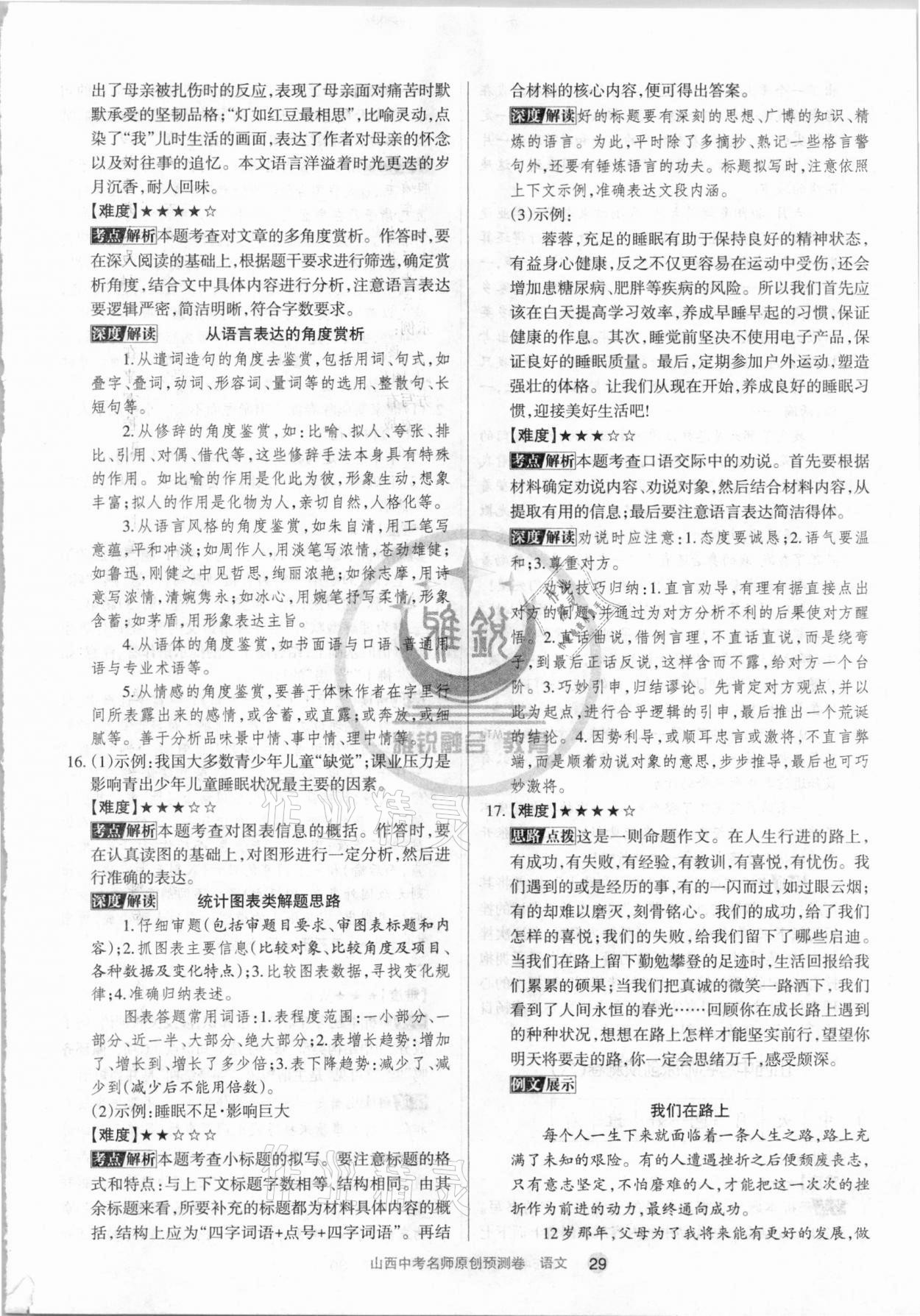 注:目前有些书本章节名称可能整理的还不是很完善,但都是按照顺序排列的,请同学们按照顺序仔细查找。练习册 2021年山西中考名师原创预测卷语文 答案主要是用来给同学们做完题方便对答案用的,请勿直接抄袭。