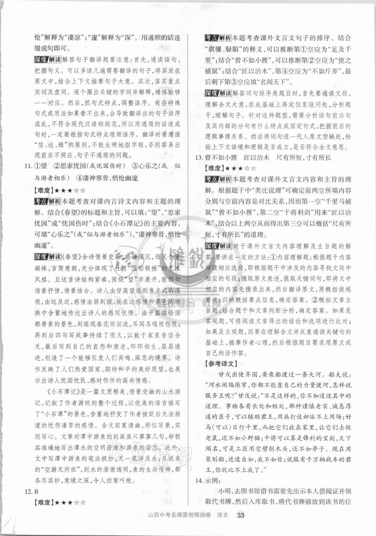 2021年山西中考名师原创预测卷语文