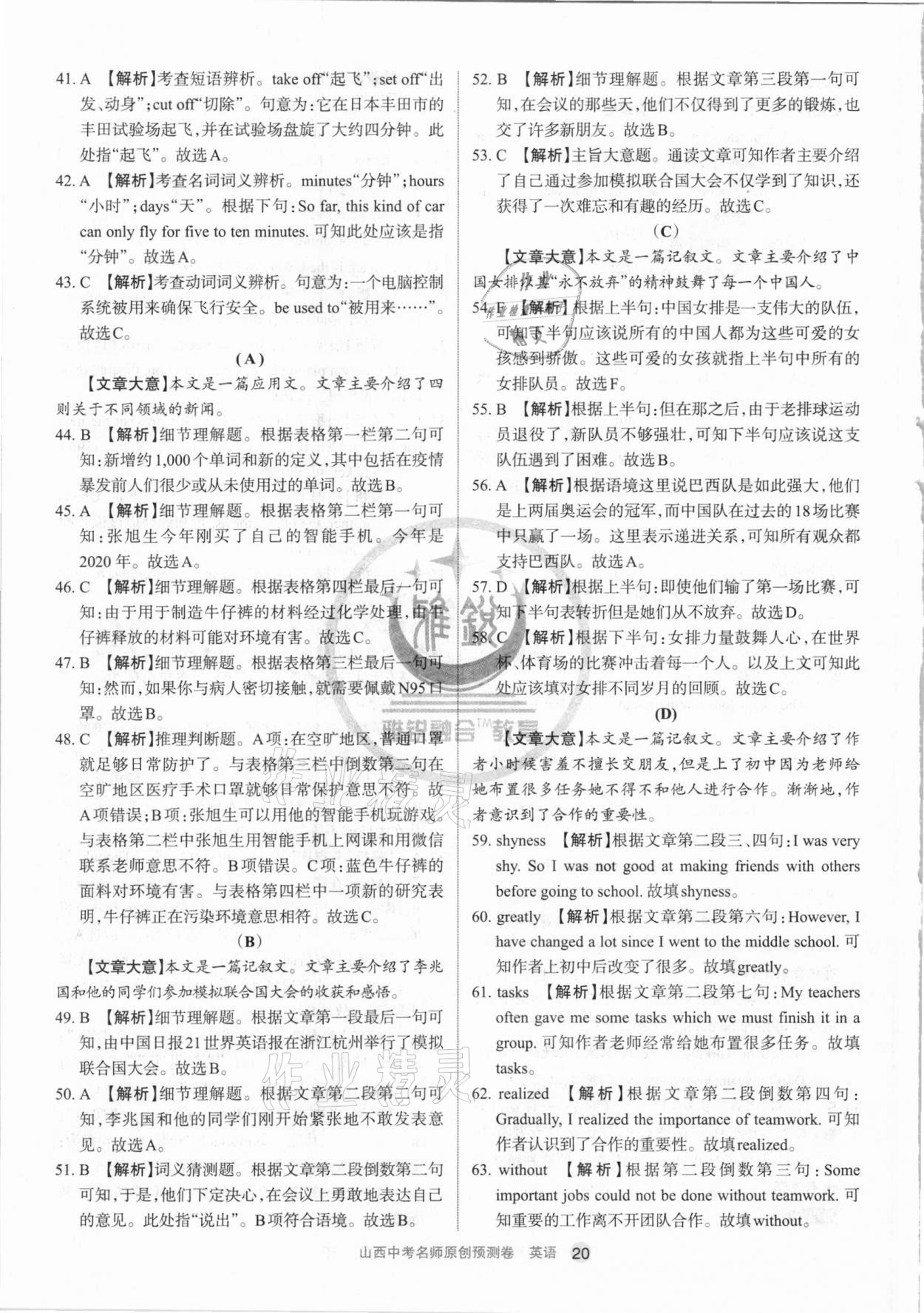 注:目前有些书本章节名称可能整理的还不是很完善,但都是按照顺序排列的,请同学们按照顺序仔细查找。练习册 2021年山西中考名师原创预测卷英语 答案主要是用来给同学们做完题方便对答案用的,请勿直接抄袭。