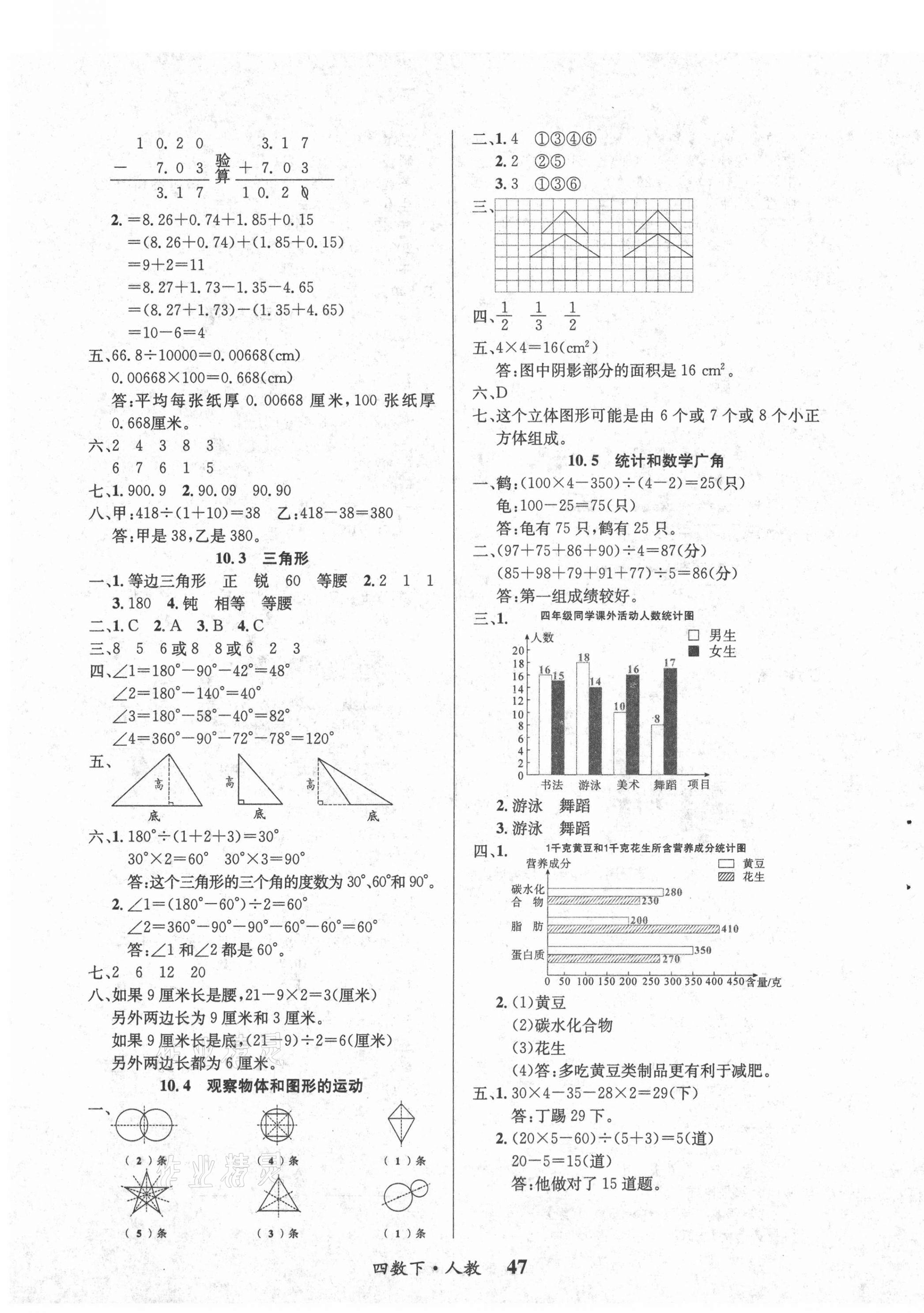 注:目前有些书本章节名称可能整理的还不是很完善,但都是按照顺序排列的,请同学们按照顺序仔细查找。练习册 2021年课内课外四年级数学下册人教版 答案主要是用来给同学们做完题方便对答案用的,请勿直接抄袭。