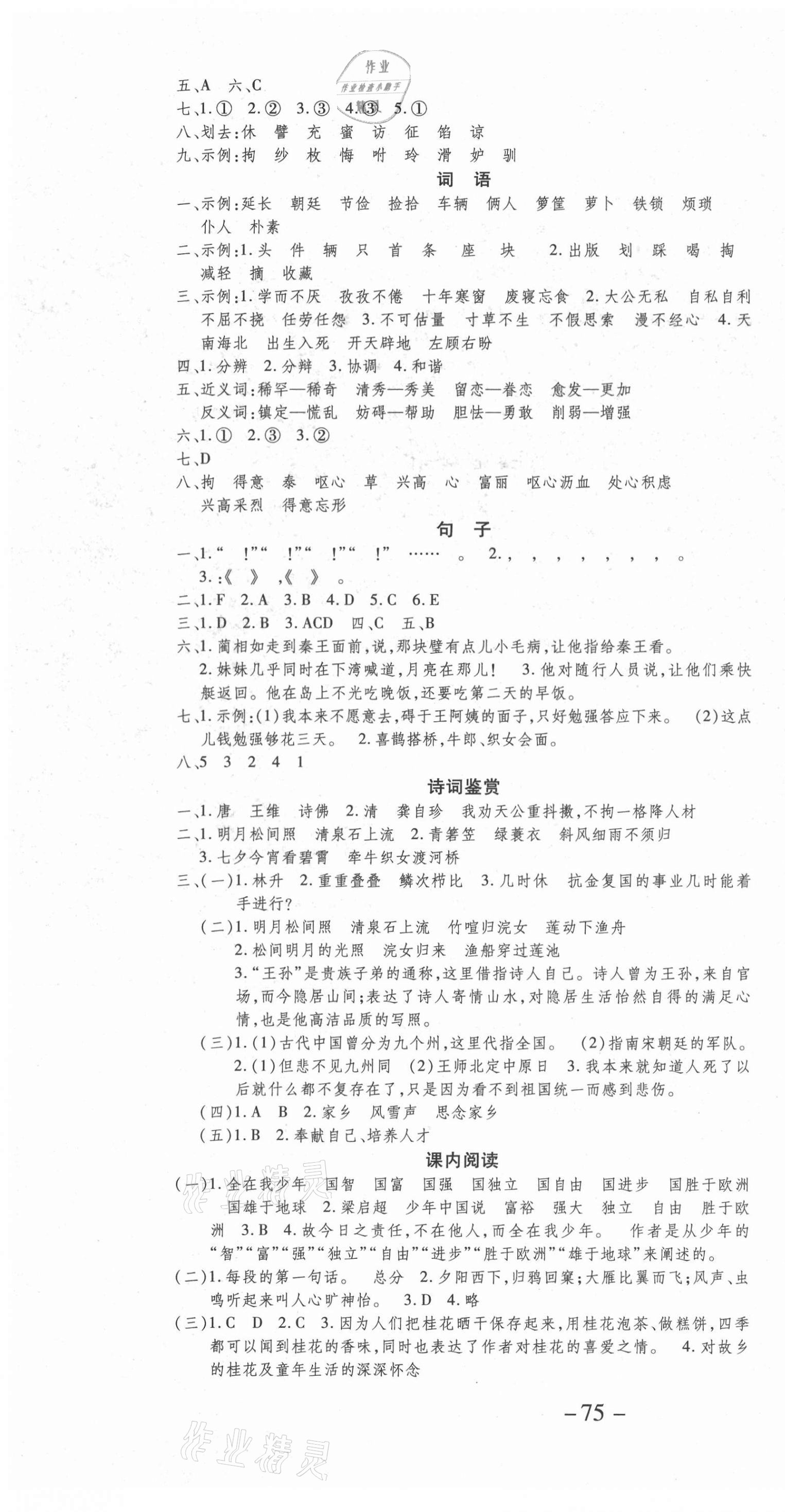 注:目前有些书本章节名称可能整理的还不是很完善,但都是按照顺序排列的,请同学们按照顺序仔细查找。练习册 2021年智趣寒假温故知新五年级语文人教版 答案主要是用来给同学们做完题方便对答案用的,请勿直接抄袭。