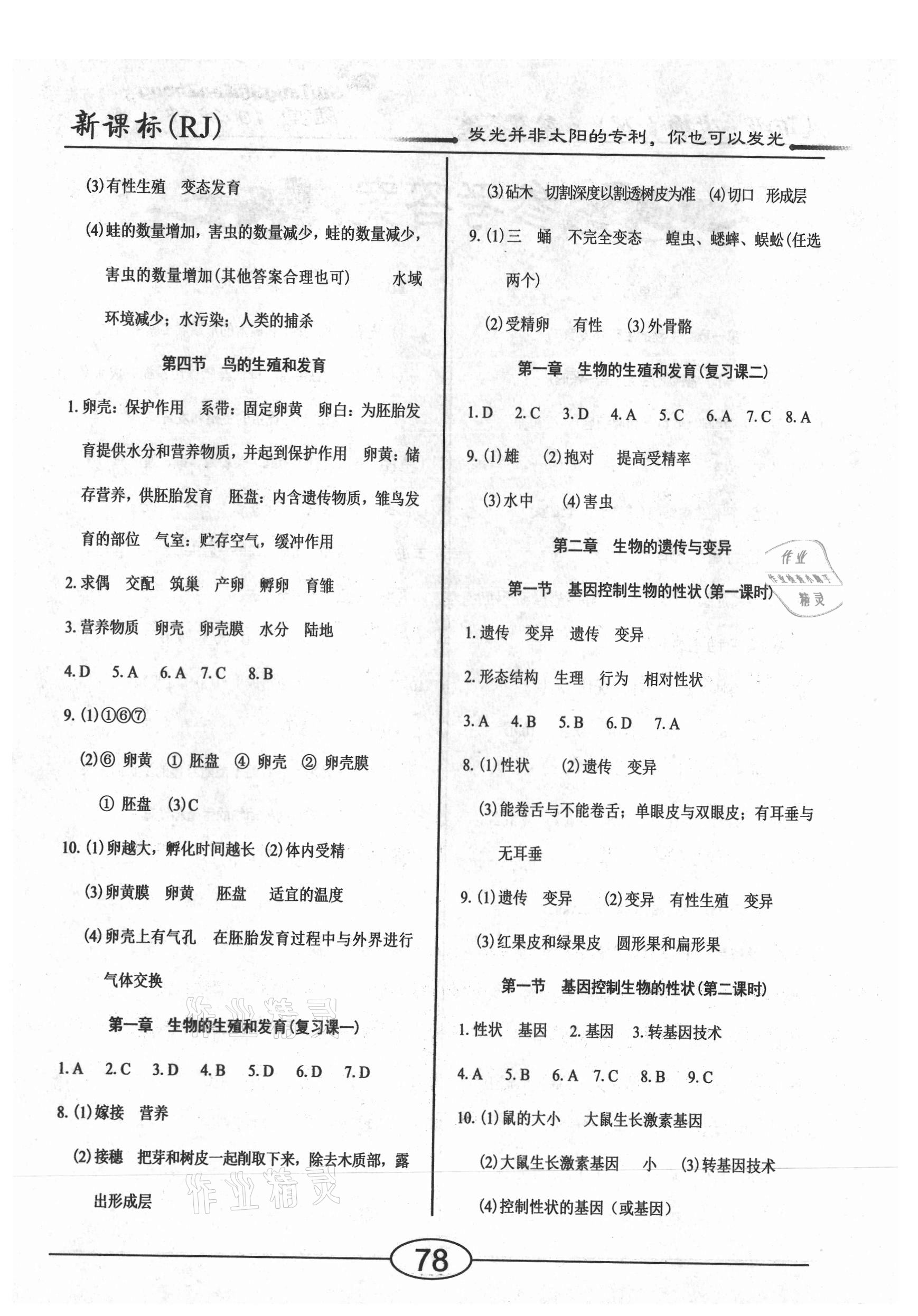 注:目前有些书本章节名称可能整理的还不是很完善,但都是按照顺序排列的,请同学们按照顺序仔细查找。练习册 2021年学考2加1八年级生物下册人教版 答案主要是用来给同学们做完题方便对答案用的,请勿直接抄袭。