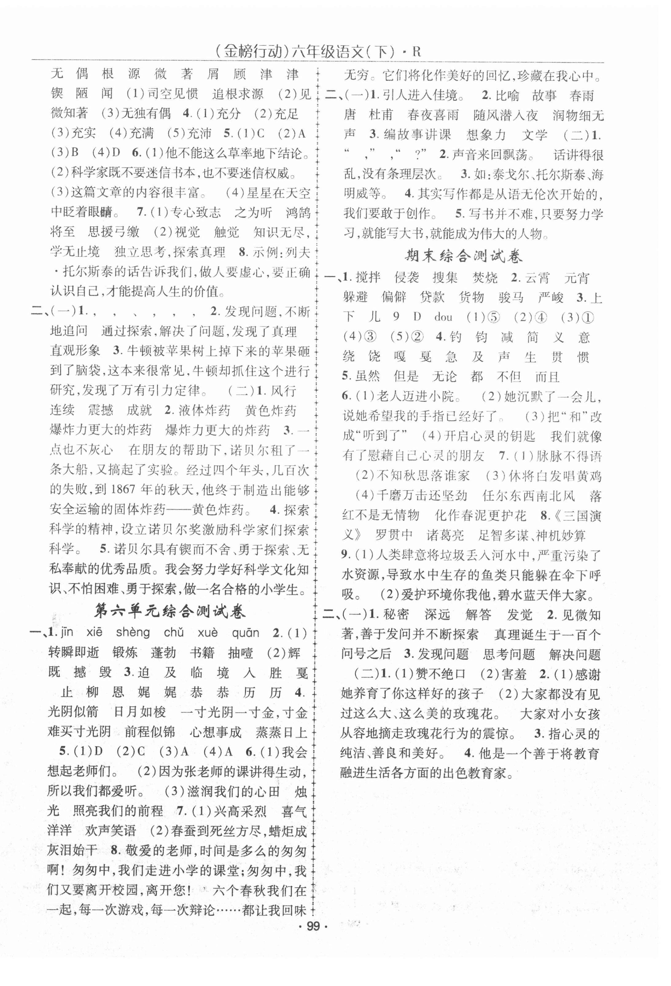 2021年金榜行动六年级语文下册人教版