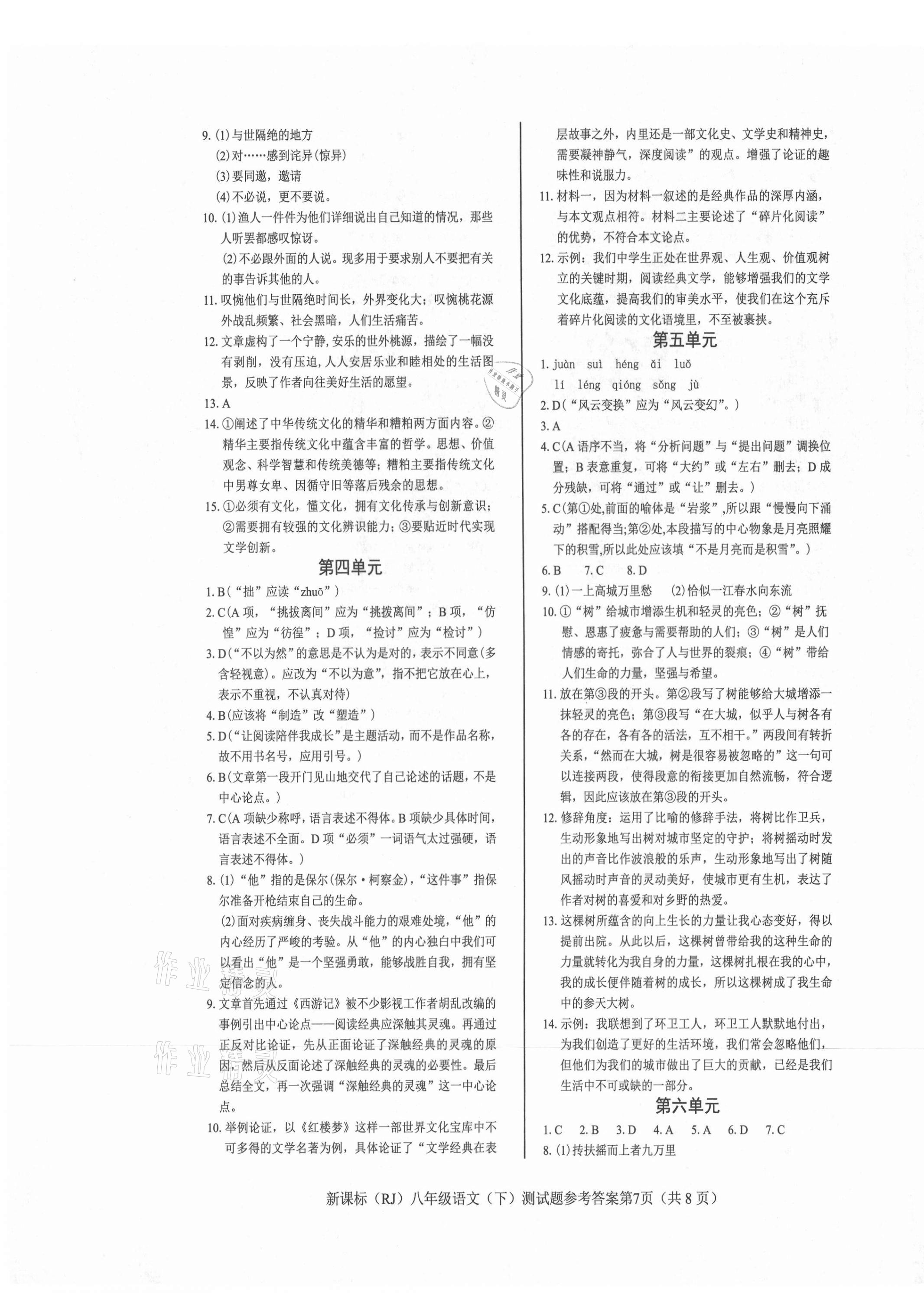 注:目前有些书本章节名称可能整理的还不是很完善,但都是按照顺序排列的,请同学们按照顺序仔细查找。练习册 2021年学考2加1八年级语文下册人教版 答案主要是用来给同学们做完题方便对答案用的,请勿直接抄袭。