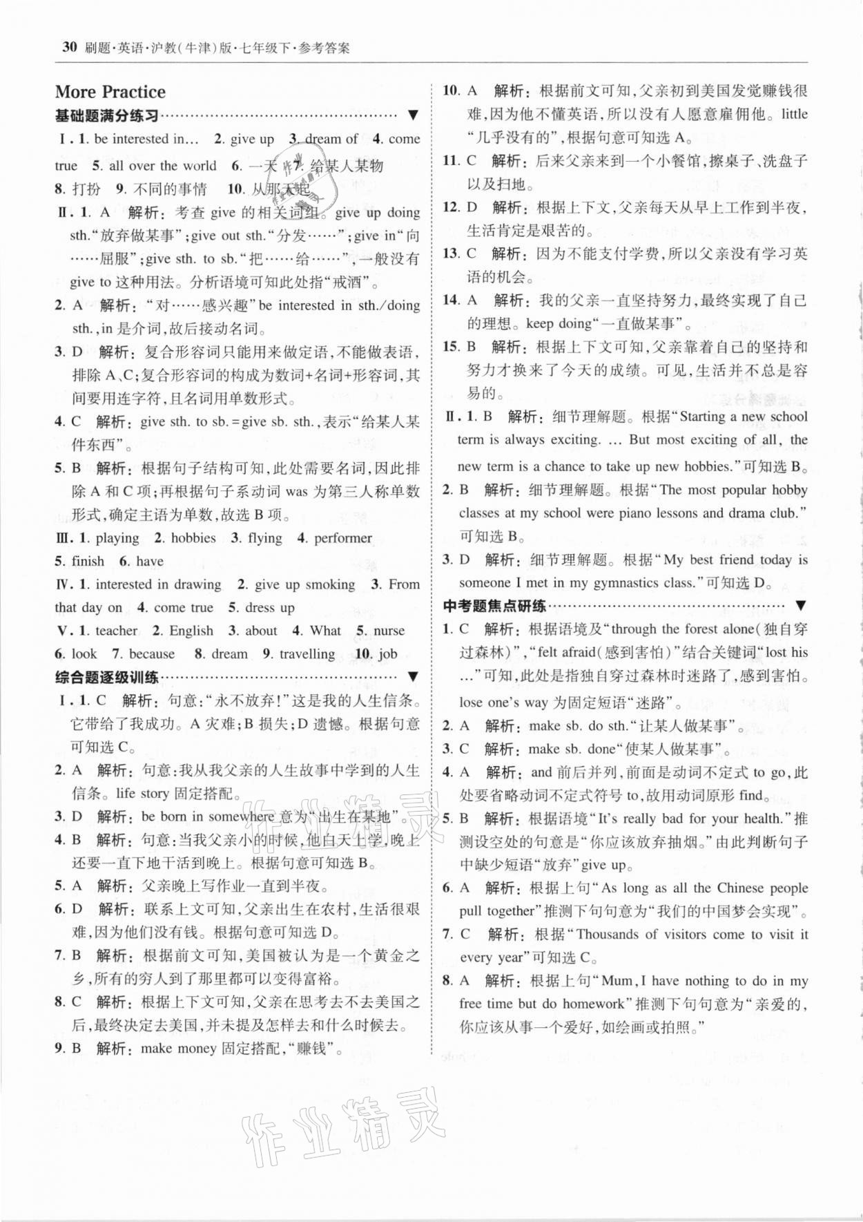 2021年北大绿卡刷题七年级英语下册沪教牛津版
