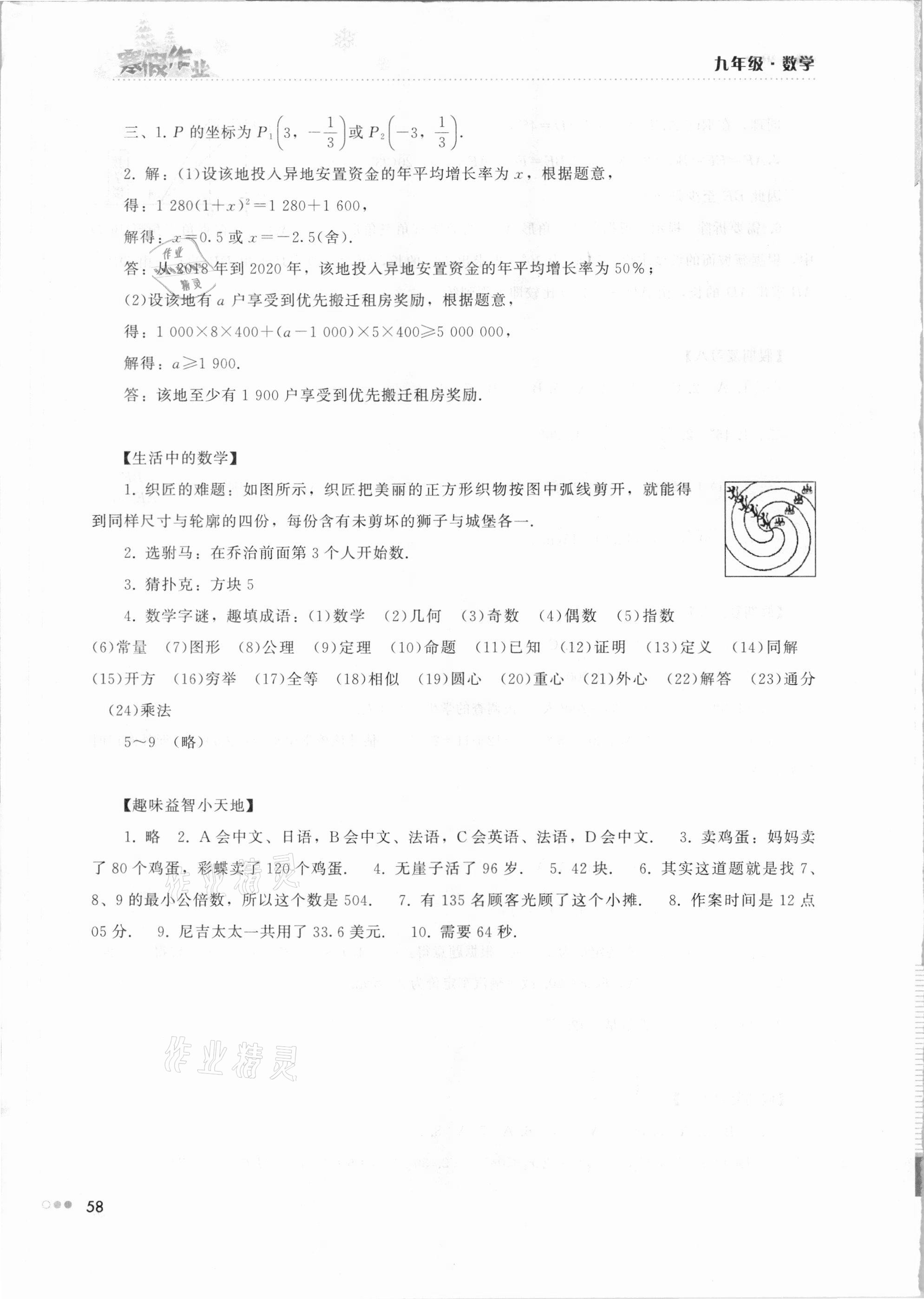 《2021年寒假作业完美假期生活九年级数学湖南教育出版社》