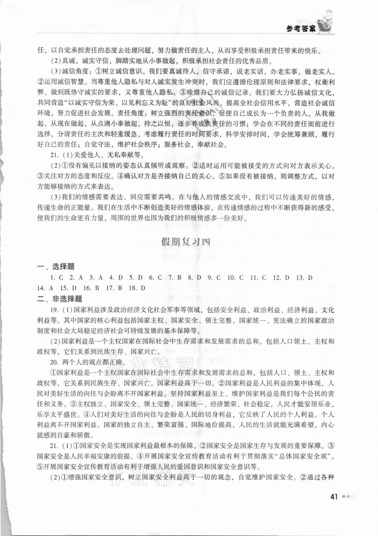 2021年寒假作业完美假期生活八年级道德与法治湖南教育出版社