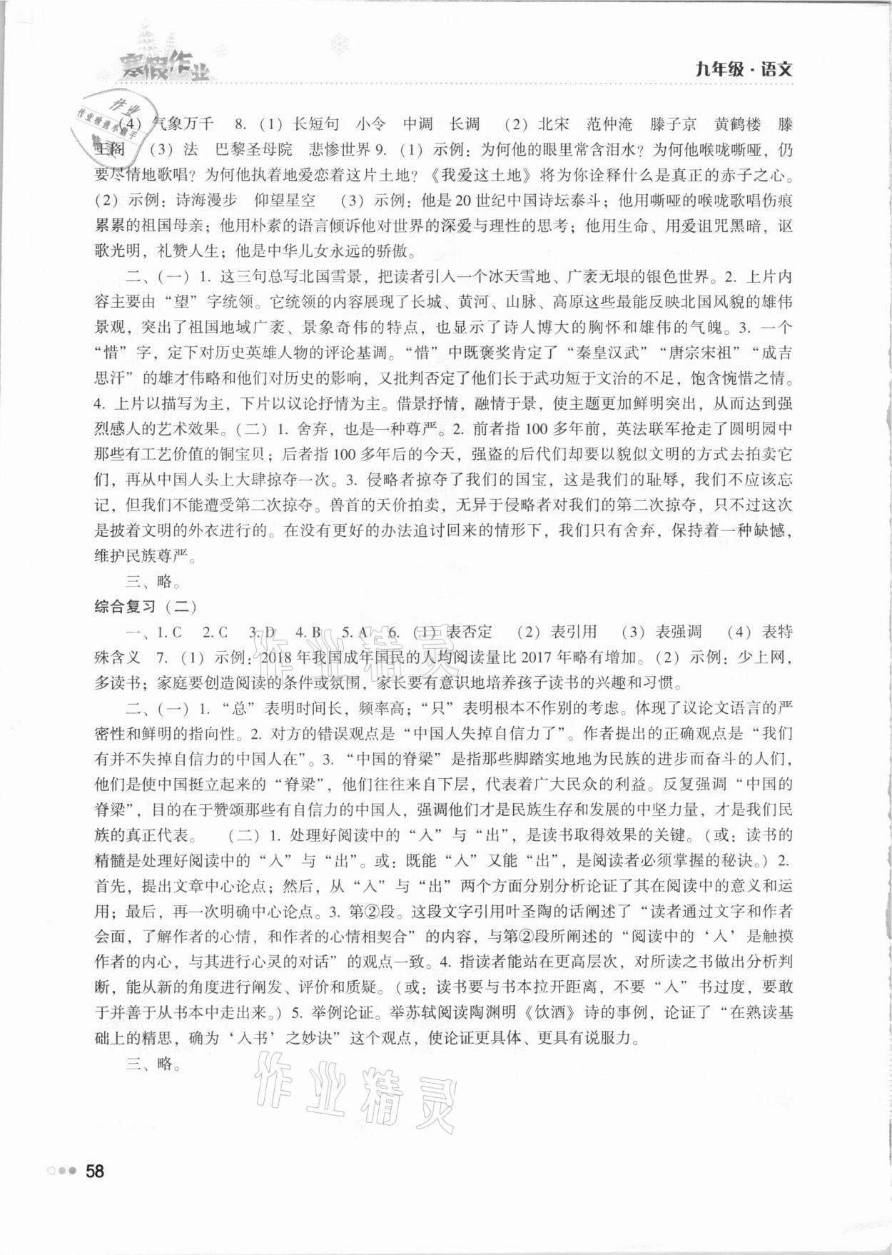 2021年寒假作业完美假期生活九年级语文湖南教育出版社