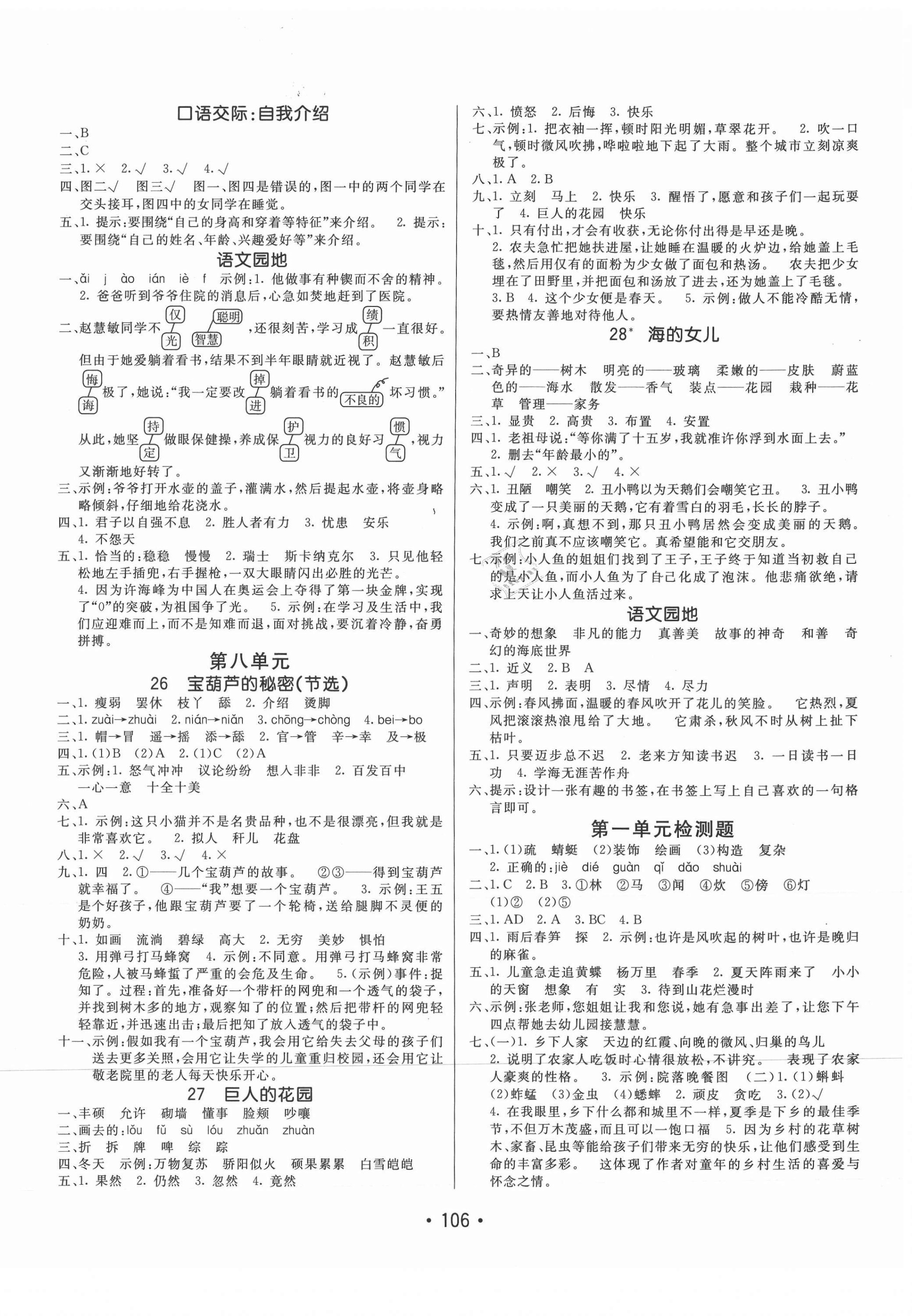 注:目前有些书本章节名称可能整理的还不是很完善,但都是按照顺序排列的,请同学们按照顺序仔细查找。练习册 2021年同行课课100分过关作业四年级语文下册人教版54制 答案主要是用来给同学们做完题方便对答案用的,请勿直接抄袭。