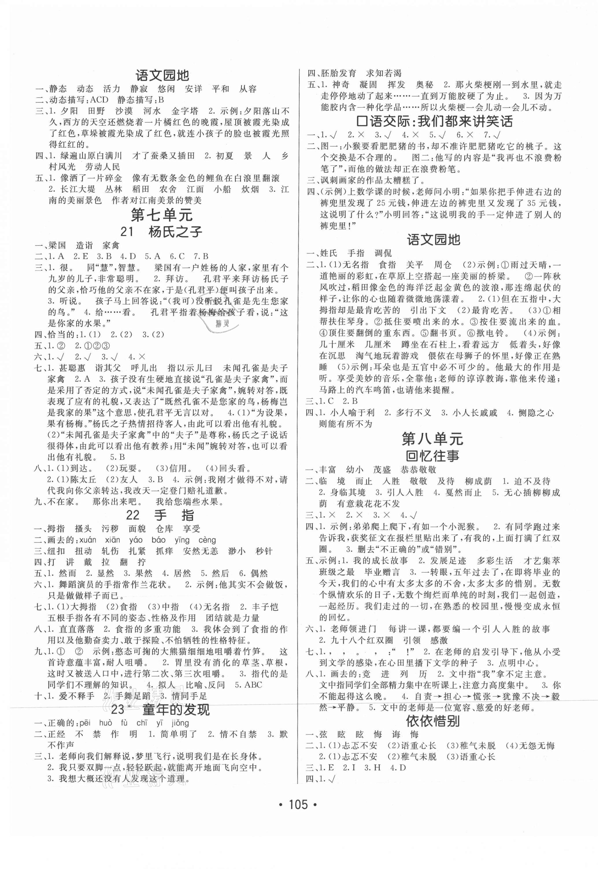 注:目前有些书本章节名称可能整理的还不是很完善,但都是按照顺序排列的,请同学们按照顺序仔细查找。练习册 2021年同行课课100分过关作业五年级语文下册人教版54制 答案主要是用来给同学们做完题方便对答案用的,请勿直接抄袭。