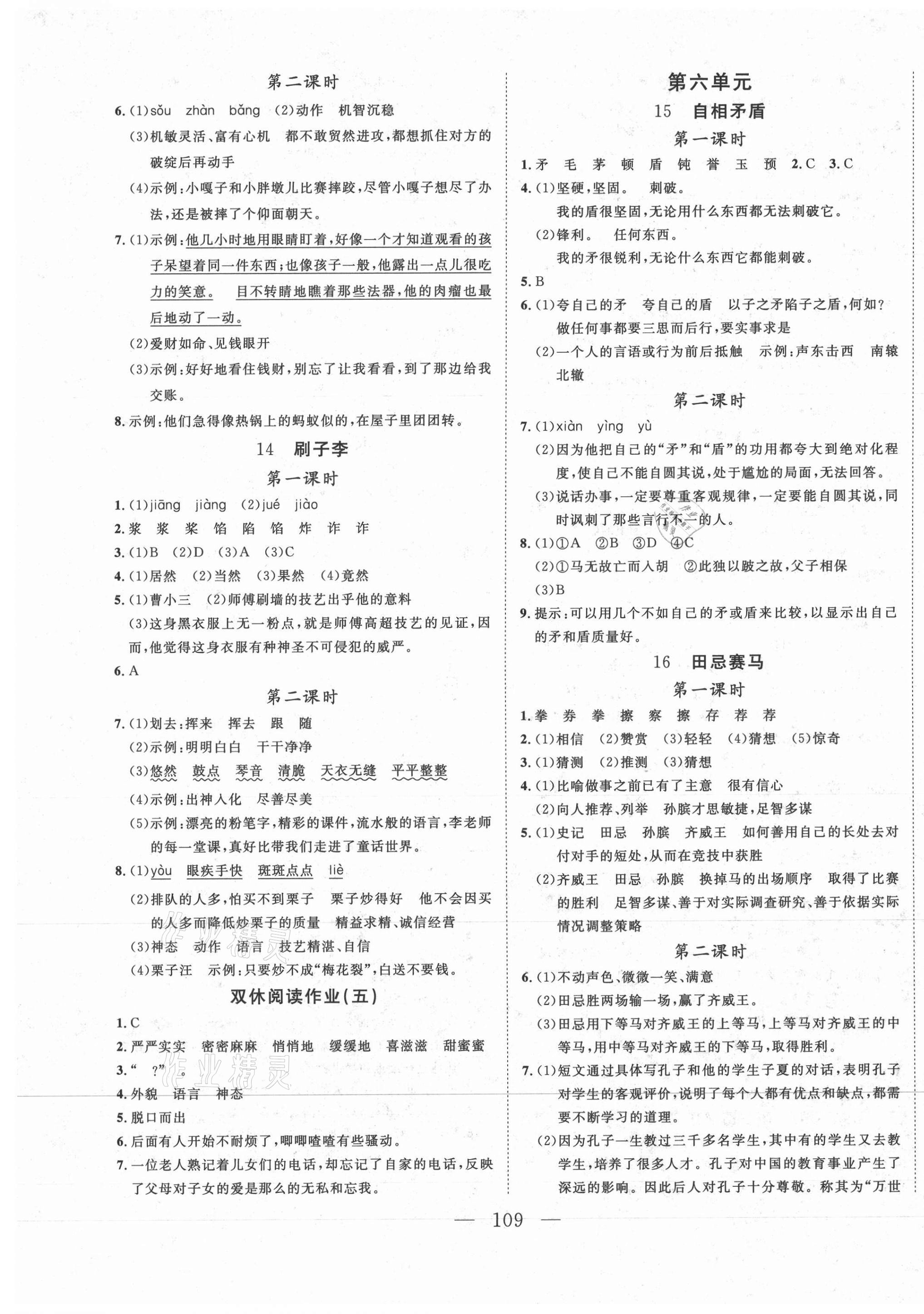 注:目前有些书本章节名称可能整理的还不是很完善,但都是按照顺序排列的,请同学们按照顺序仔细查找。练习册 2021年小超人创新课堂五年级语文下册人教版 答案主要是用来给同学们做完题方便对答案用的,请勿直接抄袭。