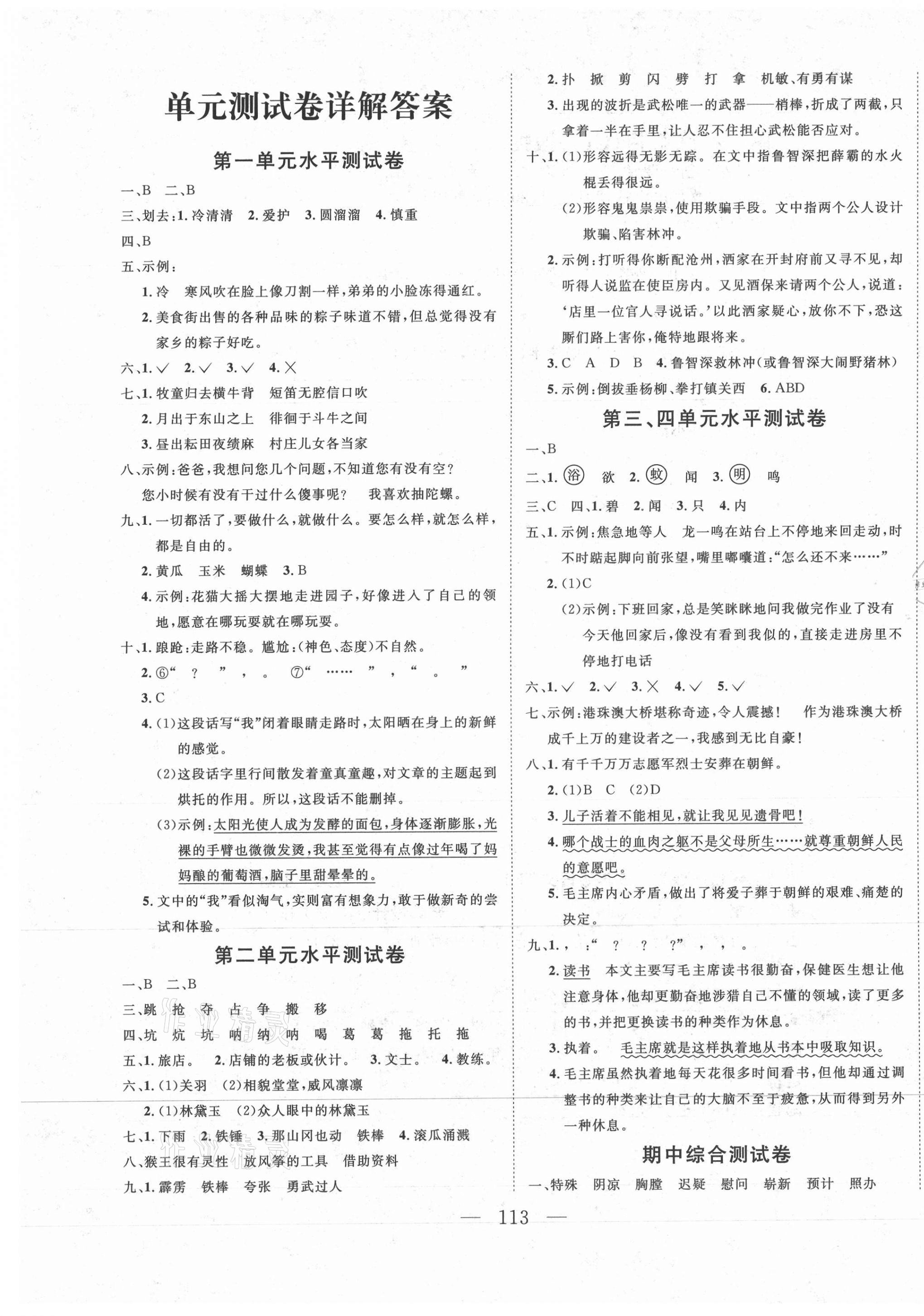 注:目前有些书本章节名称可能整理的还不是很完善,但都是按照顺序排列的,请同学们按照顺序仔细查找。练习册 2021年小超人创新课堂五年级语文下册人教版 答案主要是用来给同学们做完题方便对答案用的,请勿直接抄袭。