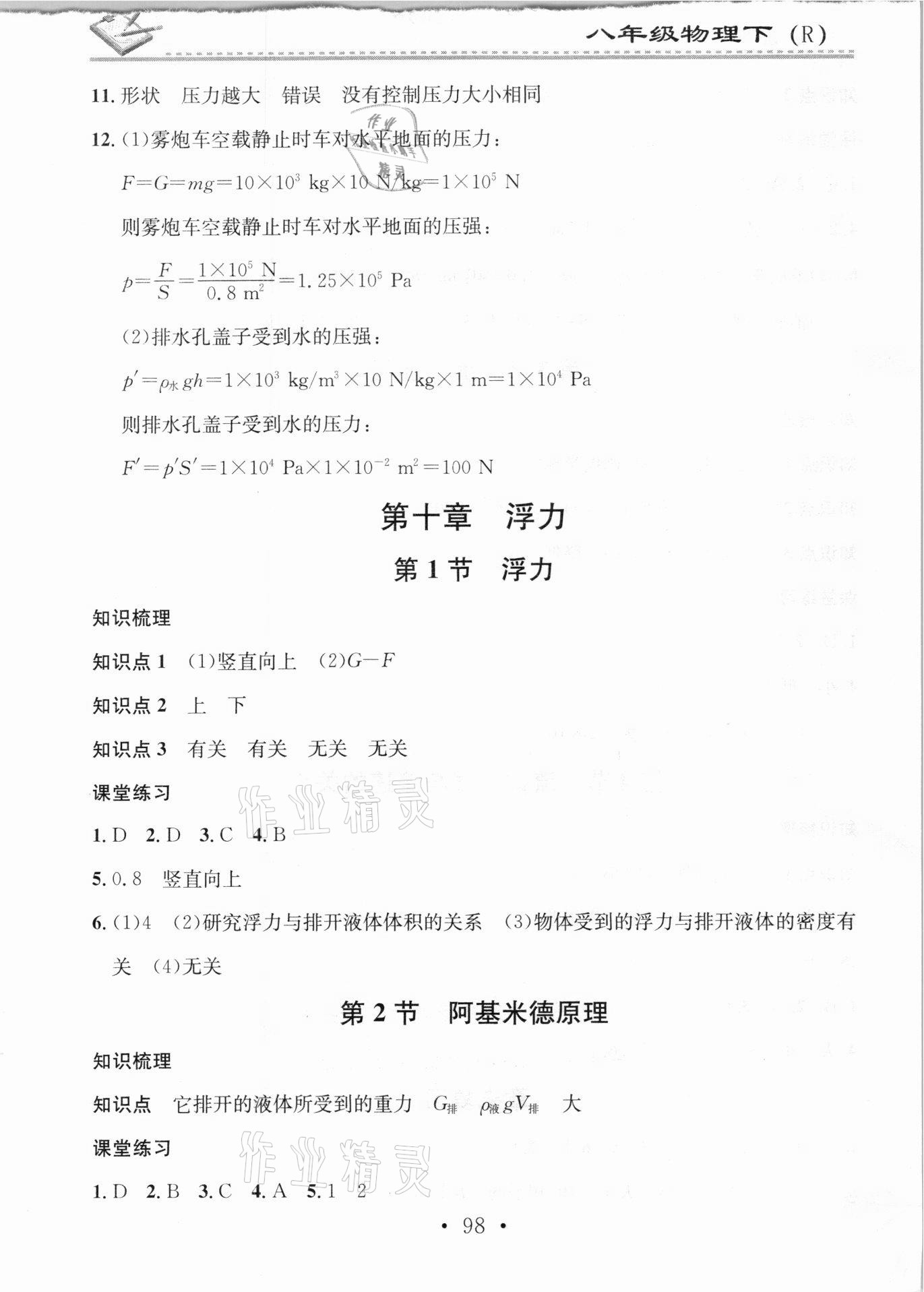 注:目前有些书本章节名称可能整理的还不是很完善,但都是按照顺序排列的,请同学们按照顺序仔细查找。练习册 2021年名校课堂小练习八年级物理下册人教版 答案主要是用来给同学们做完题方便对答案用的,请勿直接抄袭。
