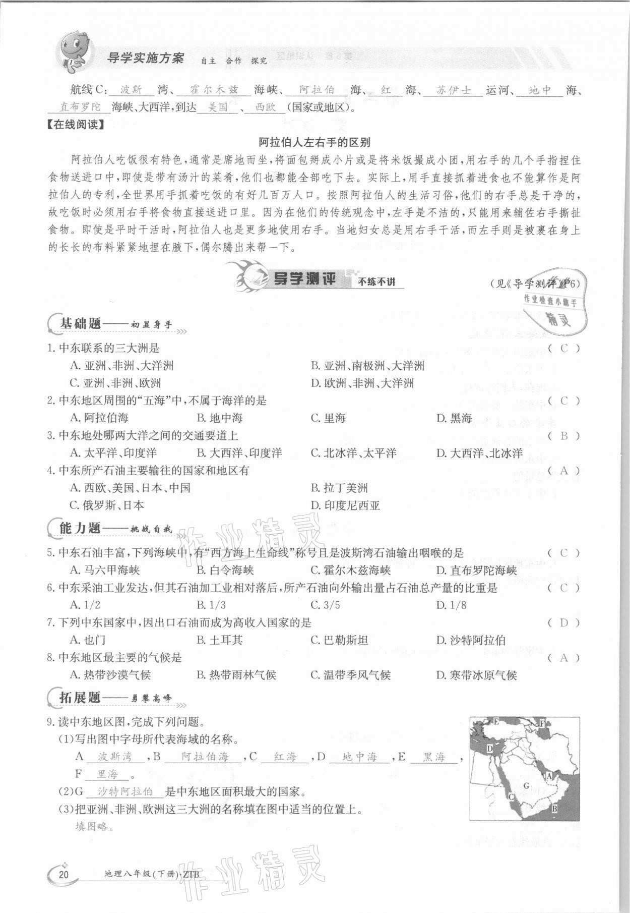2021年金太阳导学测评八年级地理下册中图版
