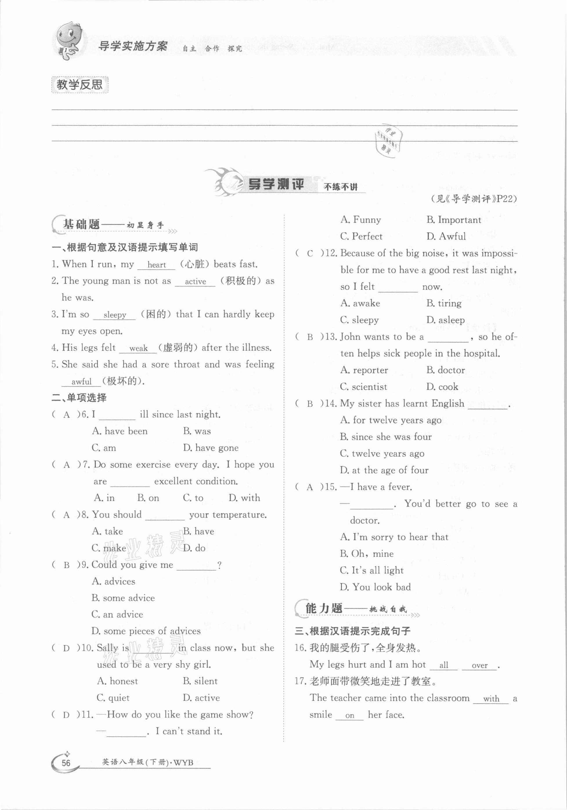 注:目前有些书本章节名称可能整理的还不是很完善,但都是按照顺序排列的,请同学们按照顺序仔细查找。练习册 2021年金太阳导学测评八年级英语下册外研版 答案主要是用来给同学们做完题方便对答案用的,请勿直接抄袭。