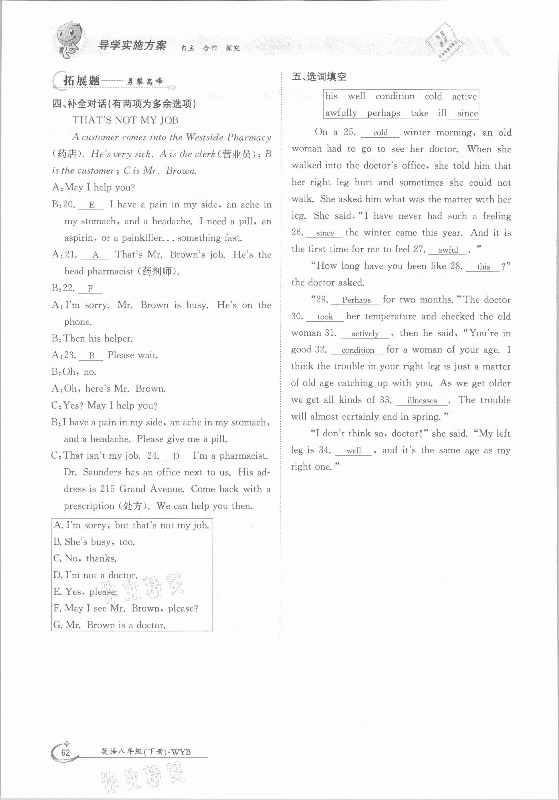 注:目前有些书本章节名称可能整理的还不是很完善,但都是按照顺序排列的,请同学们按照顺序仔细查找。练习册 2021年金太阳导学测评八年级英语下册外研版 答案主要是用来给同学们做完题方便对答案用的,请勿直接抄袭。