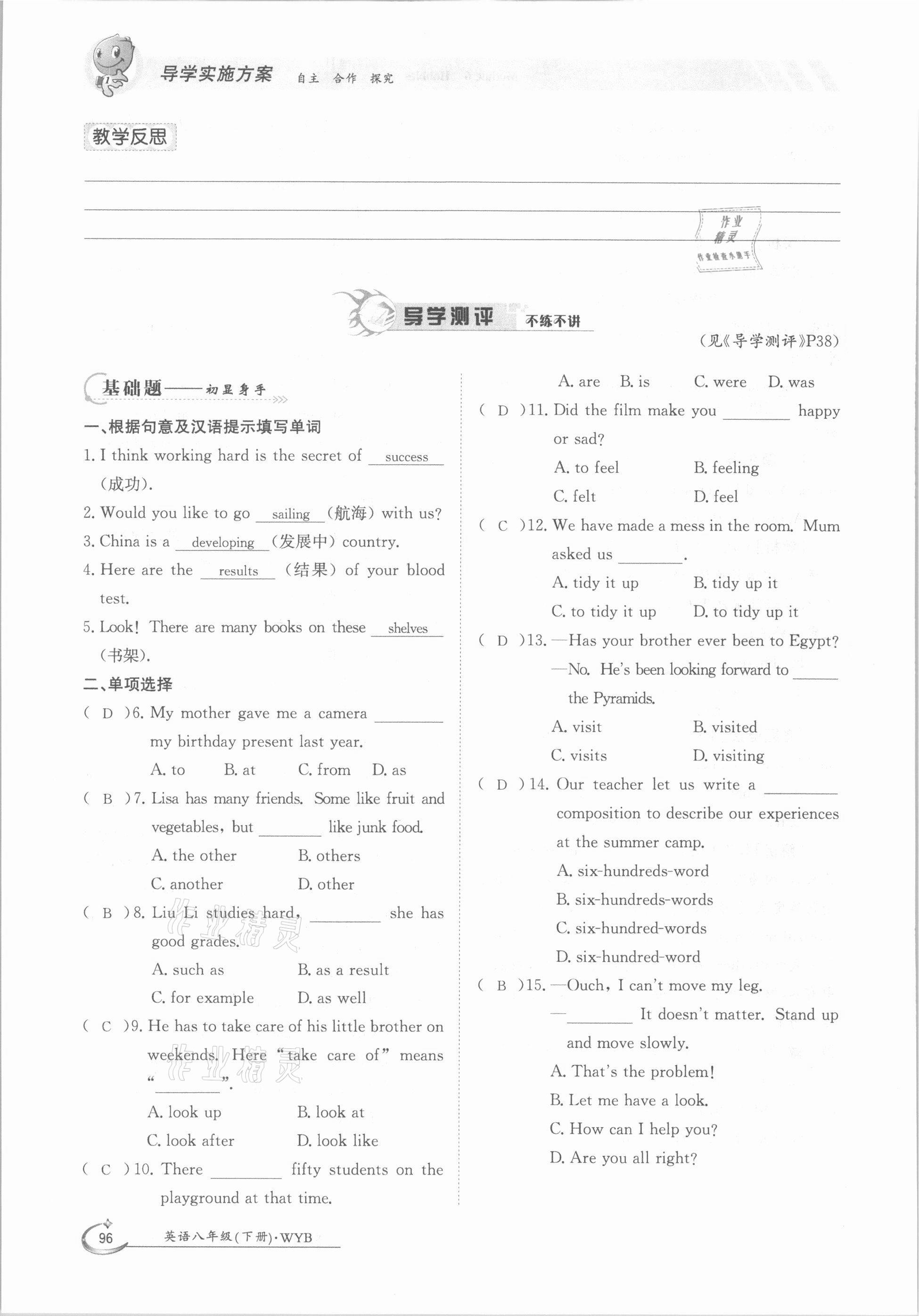 注:目前有些书本章节名称可能整理的还不是很完善,但都是按照顺序排列的,请同学们按照顺序仔细查找。练习册 2021年金太阳导学测评八年级英语下册外研版 答案主要是用来给同学们做完题方便对答案用的,请勿直接抄袭。
