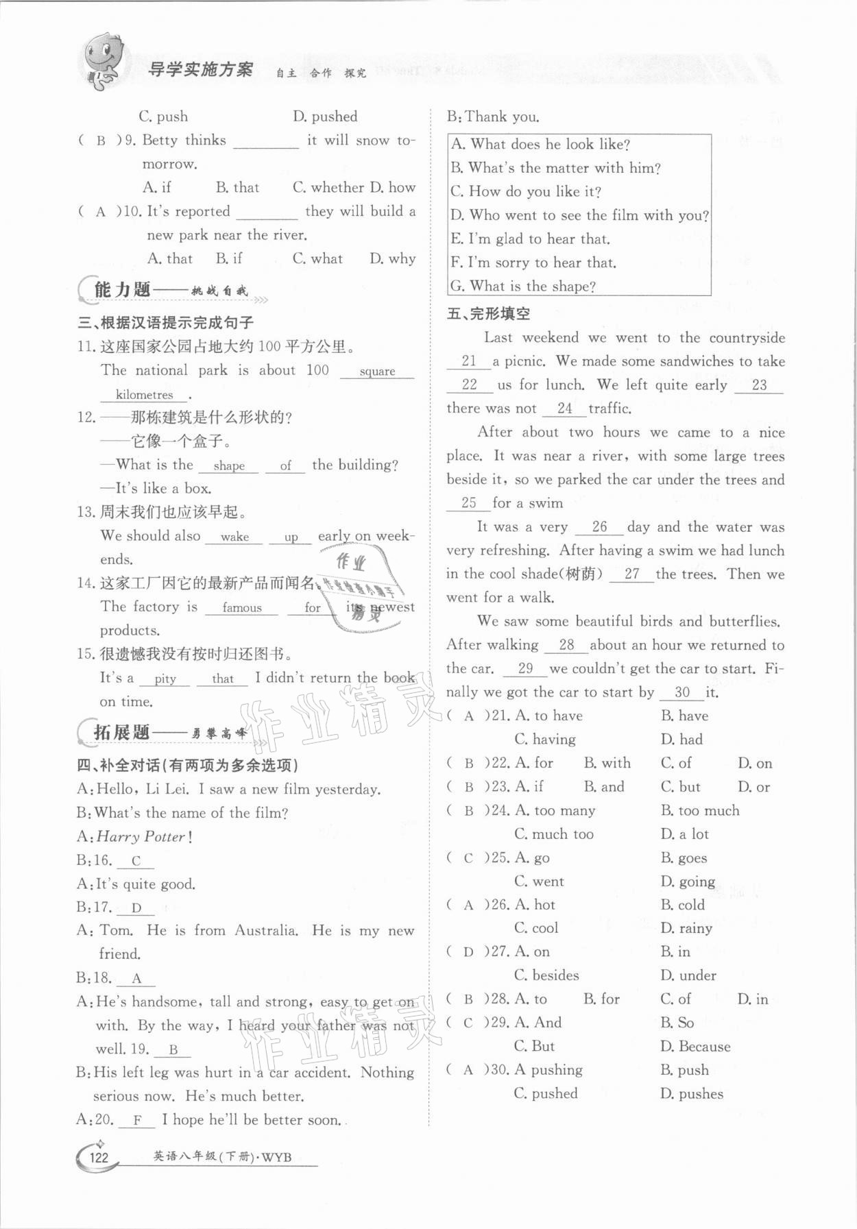 注:目前有些书本章节名称可能整理的还不是很完善,但都是按照顺序排列的,请同学们按照顺序仔细查找。练习册 2021年金太阳导学测评八年级英语下册外研版 答案主要是用来给同学们做完题方便对答案用的,请勿直接抄袭。
