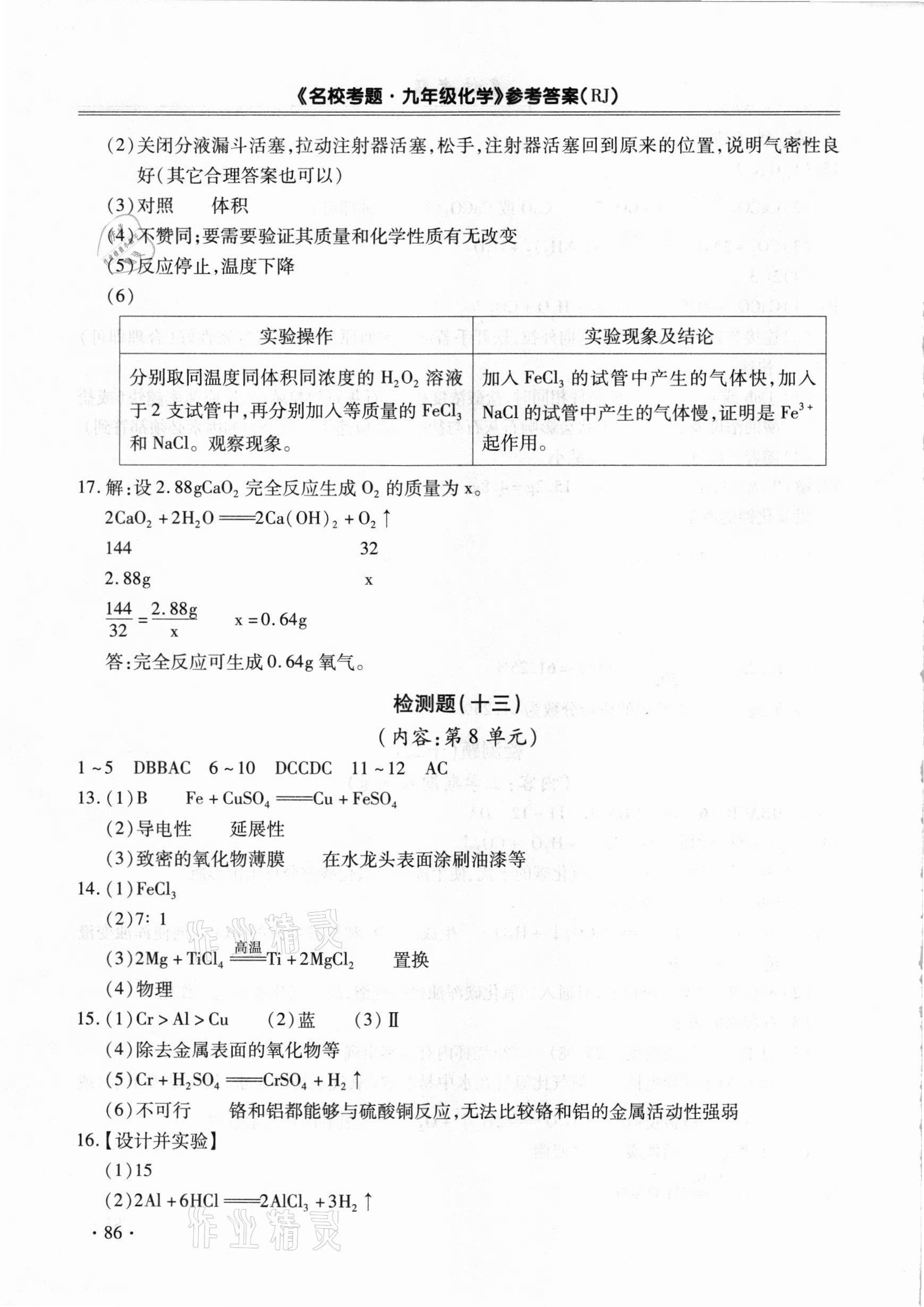 注:目前有些书本章节名称可能整理的还不是很完善,但都是按照顺序排列的,请同学们按照顺序仔细查找。练习册 2021年名校考题九年级化学全一册人教版 答案主要是用来给同学们做完题方便对答案用的,请勿直接抄袭。