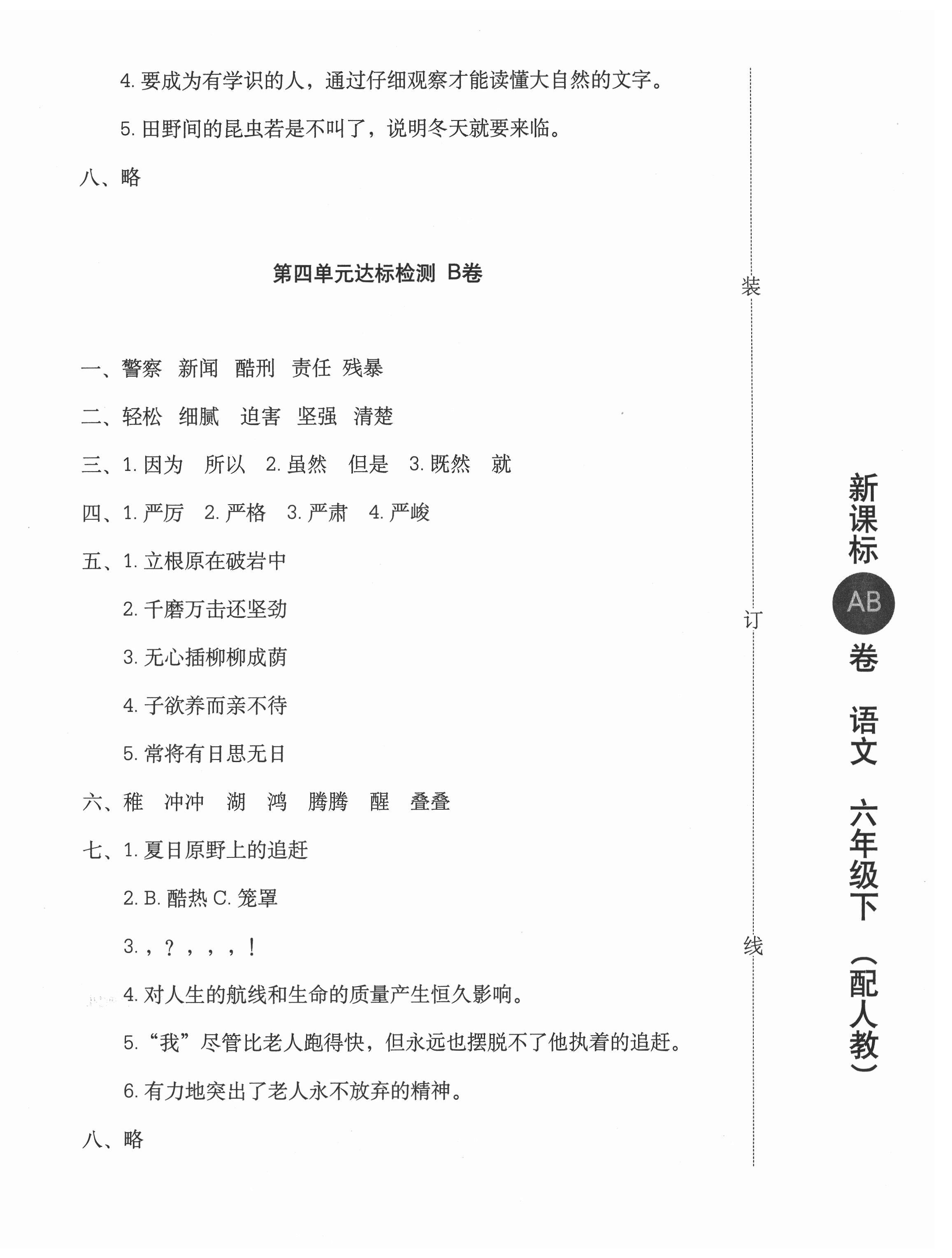 注:目前有些书本章节名称可能整理的还不是很完善,但都是按照顺序排列的,请同学们按照顺序仔细查找。练习册 2021年新课标AB卷单元测试六年级语文下册人教版 答案主要是用来给同学们做完题方便对答案用的,请勿直接抄袭。