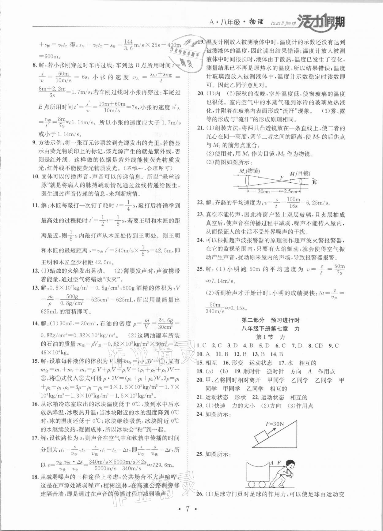 《2021年活力假期期末假期衔接八年级物理人教版》