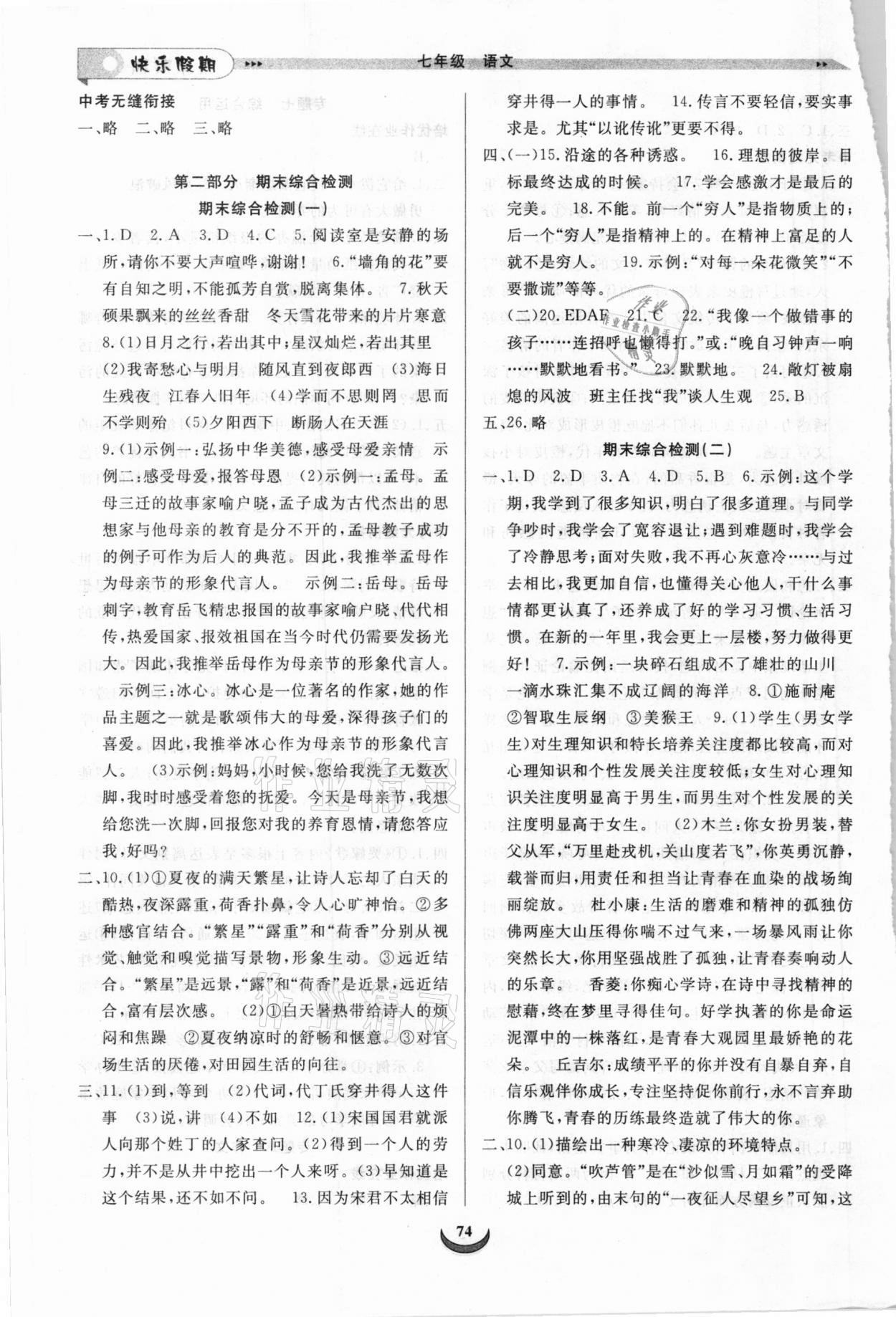 注:目前有些书本章节名称可能整理的还不是很完善,但都是按照顺序排列的,请同学们按照顺序仔细查找。练习册 2021年快乐假期培优训练衔接教材七年级语文 答案主要是用来给同学们做完题方便对答案用的,请勿直接抄袭。