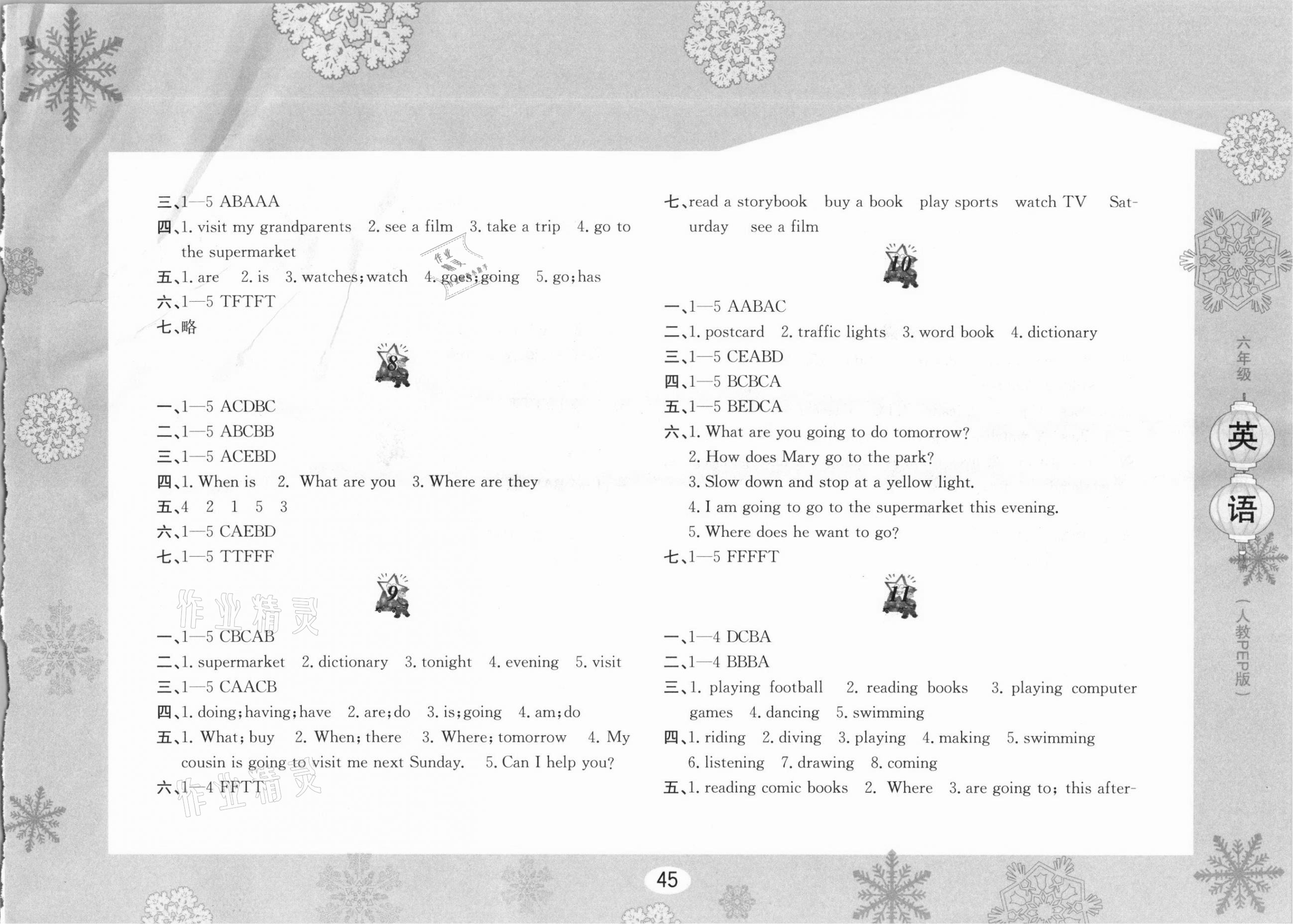 2021年寒假作业六年级英语人教PEP版黄山书社