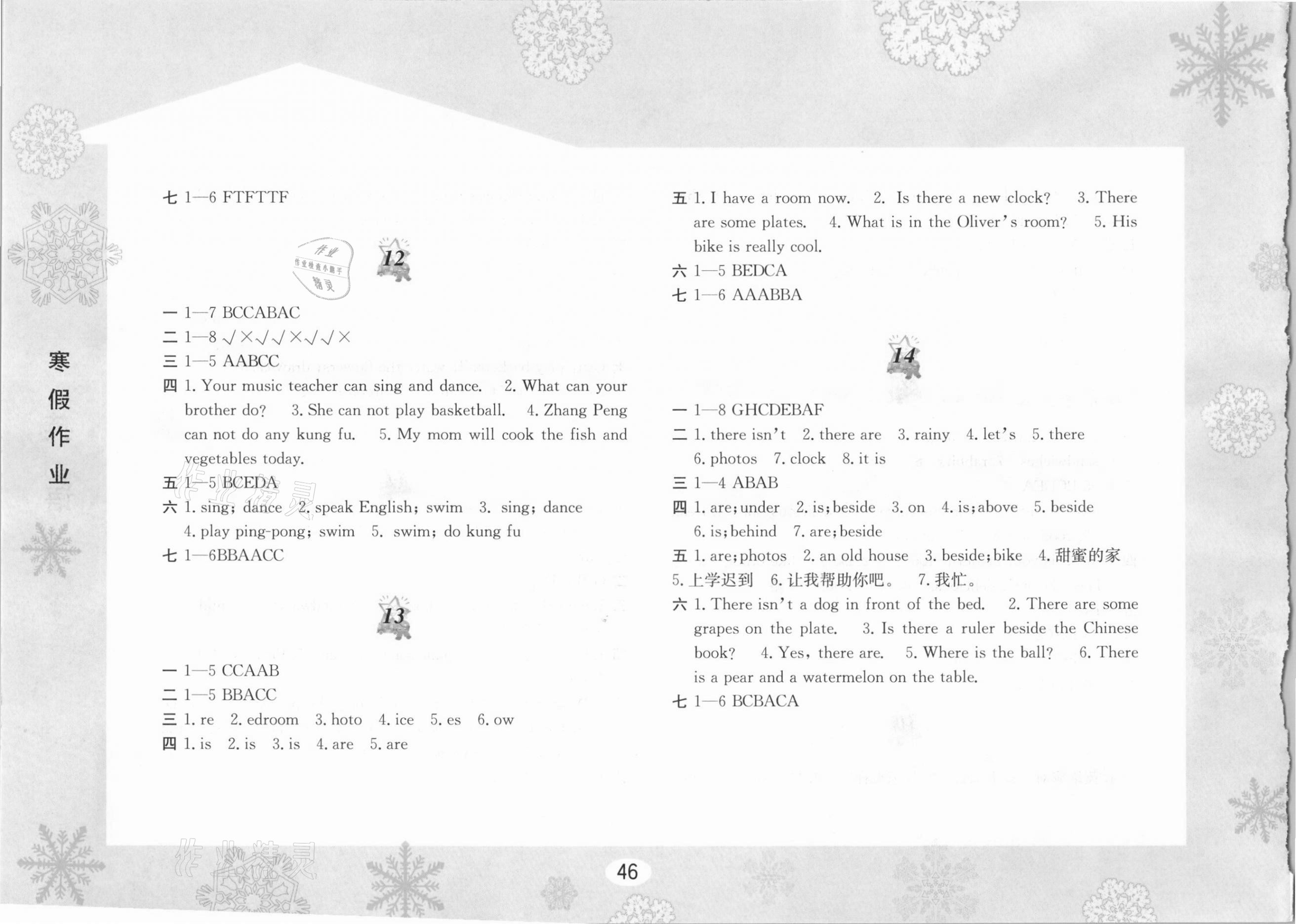 2021年寒假作业五年级英语人教PEP版黄山书社