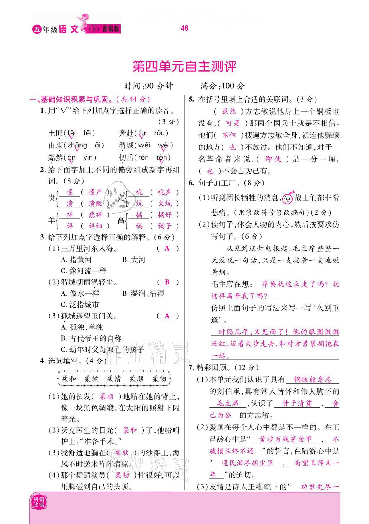 注:目前有些书本章节名称可能整理的还不是很完善,但都是按照顺序排列的,请同学们按照顺序仔细查找。练习册 2021年小学课时优练五年级语文下册部编版 答案主要是用来给同学们做完题方便对答案用的,请勿直接抄袭。
