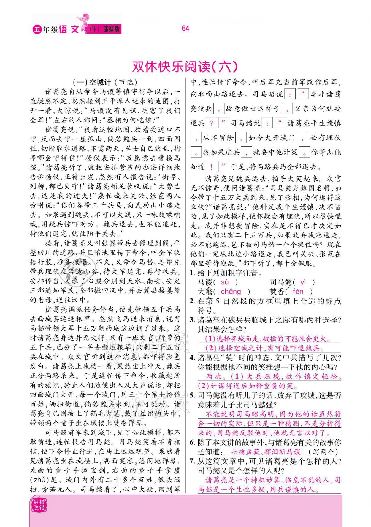 注:目前有些书本章节名称可能整理的还不是很完善,但都是按照顺序排列的,请同学们按照顺序仔细查找。练习册 2021年小学课时优练五年级语文下册部编版 答案主要是用来给同学们做完题方便对答案用的,请勿直接抄袭。