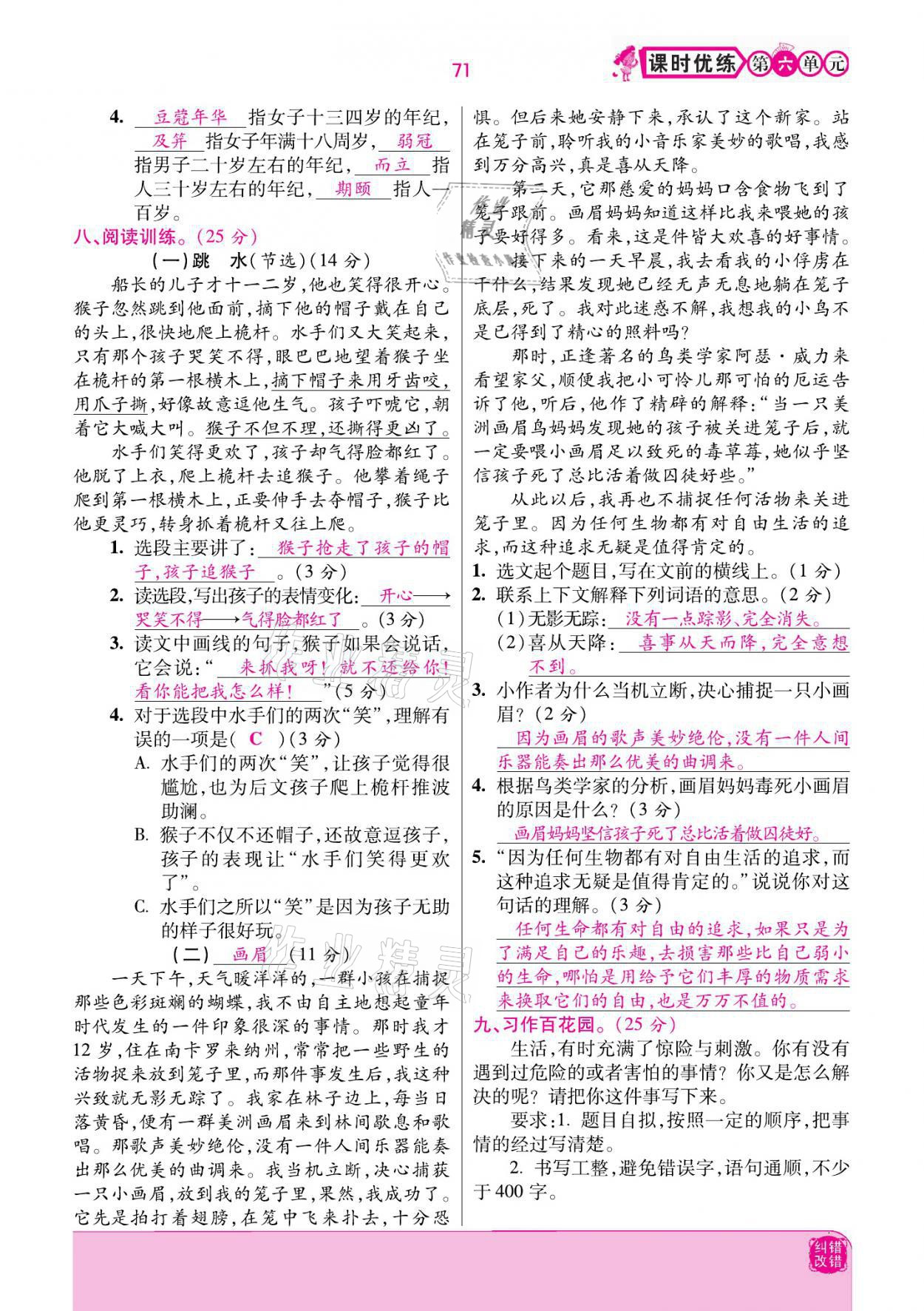 注:目前有些书本章节名称可能整理的还不是很完善,但都是按照顺序排列的,请同学们按照顺序仔细查找。练习册 2021年小学课时优练五年级语文下册部编版 答案主要是用来给同学们做完题方便对答案用的,请勿直接抄袭。