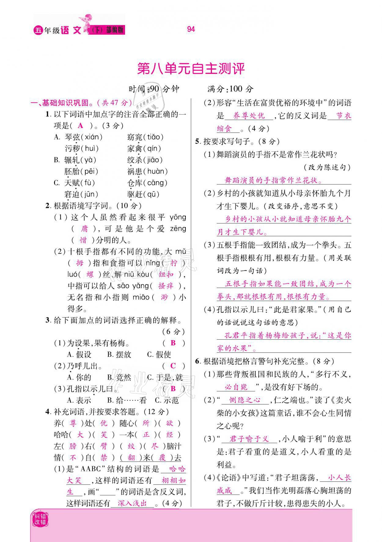 注:目前有些书本章节名称可能整理的还不是很完善,但都是按照顺序排列的,请同学们按照顺序仔细查找。练习册 2021年小学课时优练五年级语文下册部编版 答案主要是用来给同学们做完题方便对答案用的,请勿直接抄袭。